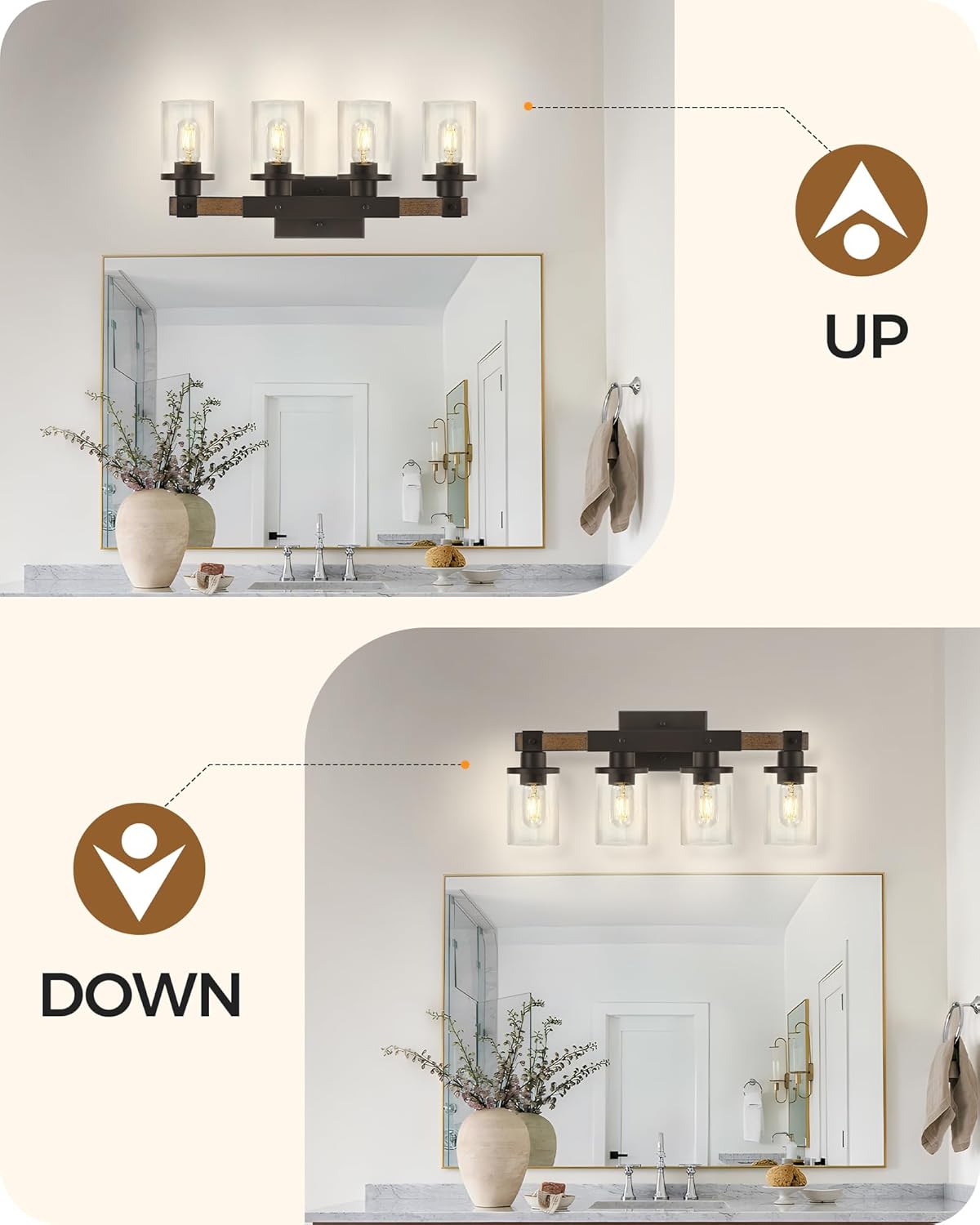 | Other Special Features of the Product | 2 Direction Options: UP/DOWN, Black Metal, Clear Glass Shade, Compatible with E26 Base Bulbs, Rustic Vanity Lights for Bathroom |