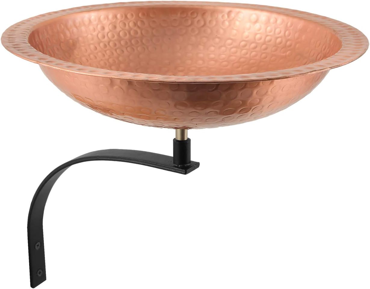 This simple Rail-Mounted Hammered Solid Copper Birdbath bowl is a classic garden accent. The wide rim lets birds perch while drinking and bathing for close observation. Perfect for porches, balconies or deck rails, the wrought iron bracket has C-type clamp that holds the bracket to the railing without need for drilling or permanent mounting. Solid copper will never rust outdoors and will instead develop a lovely natural patina over time.