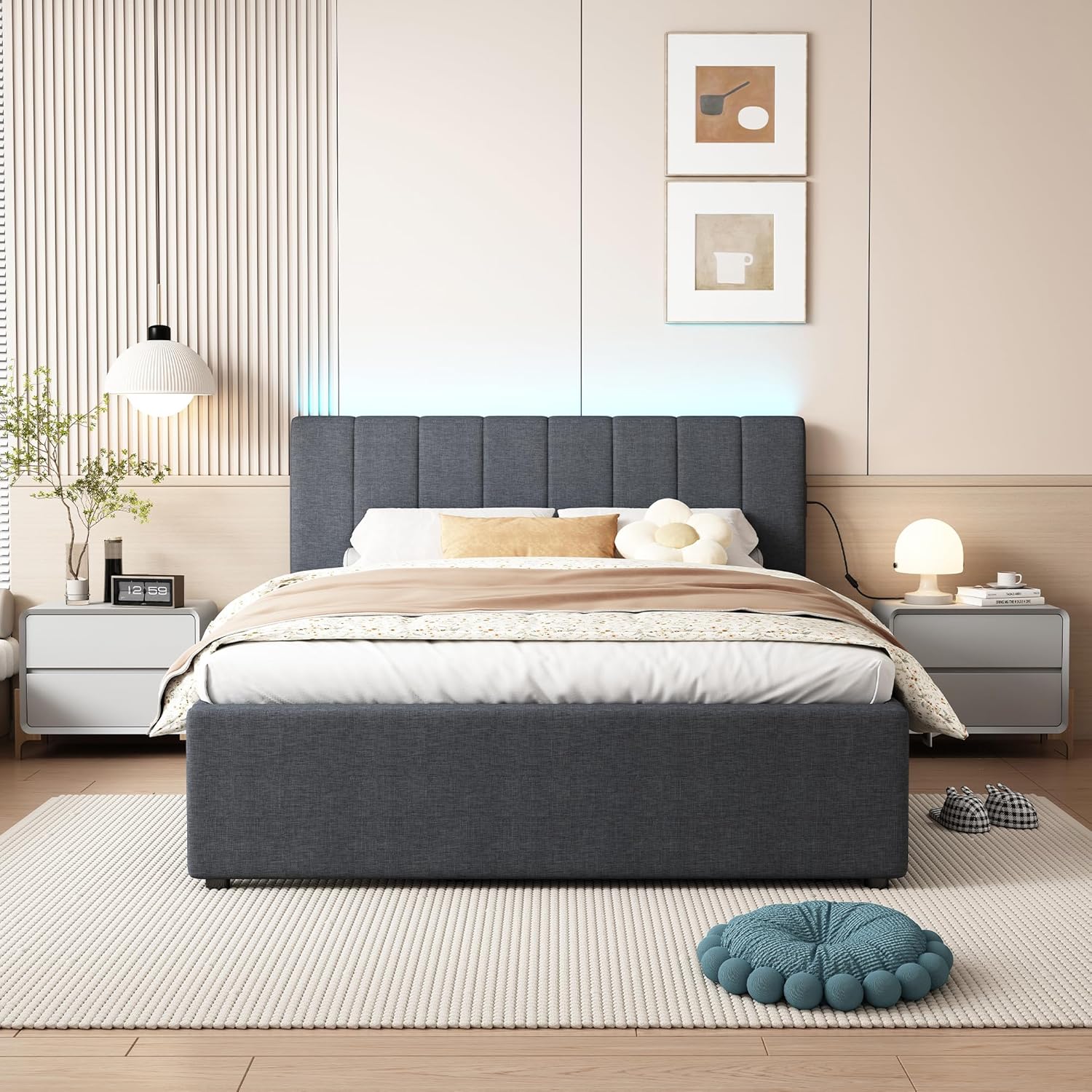 | Item Type Name | Ball & Cast Full Size Bed Frame with Trundle,Linen Upholstered Platform Bed with LED Light and USB Ports,Trundle Bed Full with Channel Tufted Headboard,No Box Spring Needed,Easy Assembly,Dark Grey |