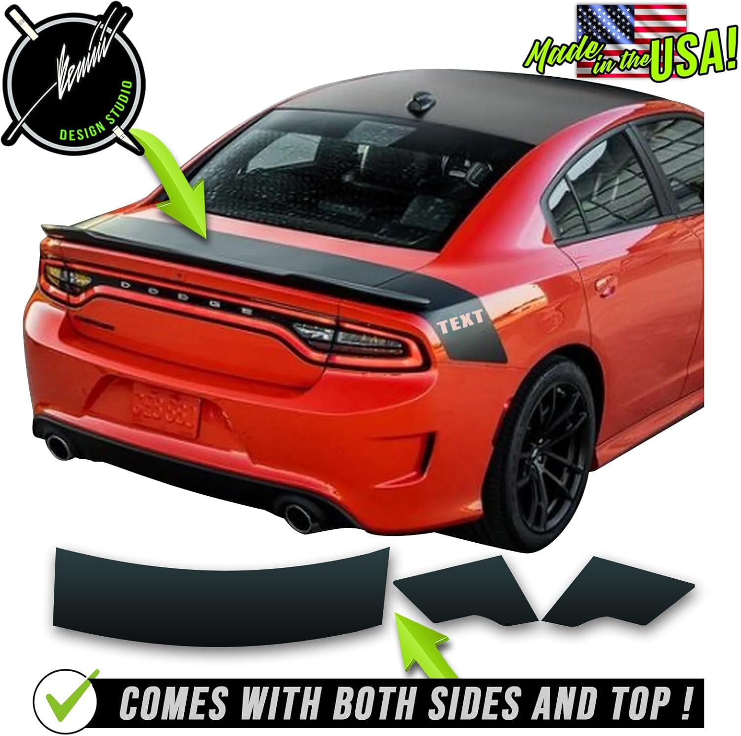 Rear Belt racing stripes Compatible With Dodge Charger Daytona Scat Pack Swinger RT SSRT8 Hellcat 2015-2024. This Full decal kit is designed to fit 201502024 Dodge Charger Swinger SRT8 Daytona and base models. It is a great way to add some style and aggression to your vehicle, while also providing some protection to the scoop from the elements. This decal is made from high-quality vinyl material that is durable and long-lasting. It is easy to install and comes with detailed instructions. The blackout decal has a matte black finish that matches well with the factory black trim on the Charger SRT8 Super Bee Daytona. It is also a perfect complement to other black exterior mods, such as black wheels or blacked-out grilles. Upgrade the look of your Charger with this sleek and stylish hood scoop blackout decal.
