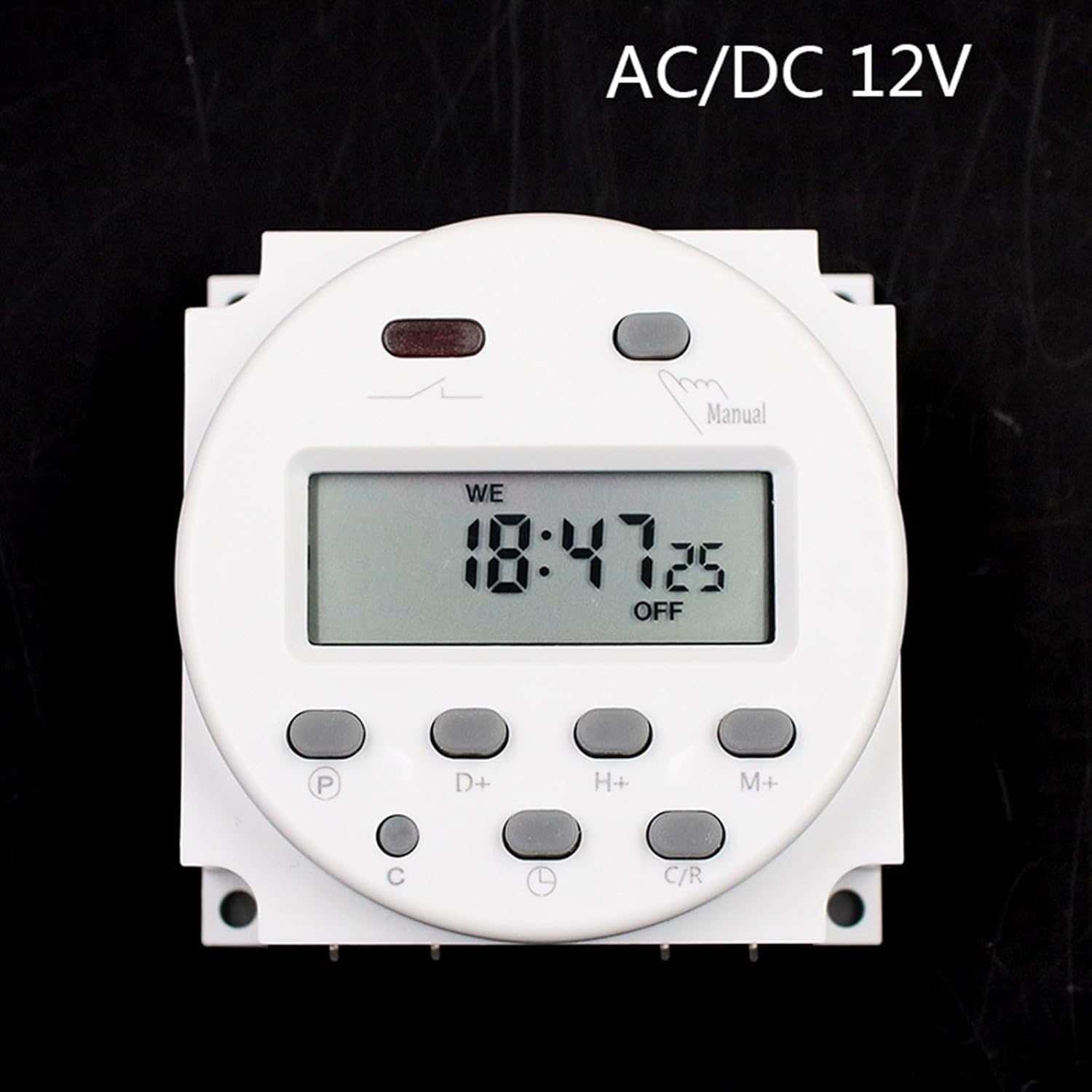 RelaysProduct Name : Programmable Timer;Model No. : CN101A;Rated Control Voltage : AC/DC 12V-240V;Contact Capacity : 16A(8)A, 250V ACHysteresis : less than or equal to 2 sec/day(25C);ON/OFF : 17 ON/OFF;Power Consumption : 7.5VA(max.);Display : LCDMinimum Interval : 1 minute;Switching Contact : 1 changeover switch;Ambient Temperature : -10~+40°CAmbient Humidity : 35-85%RH;Mounting Hole Diameter : 3mm / 0.12";Overall Size(Approx.) : 62 x 60 x 33mm / 2.4" x 2.36" x 1.3"(L*W*H)Material : Plastic, Electronic Parts;Net Weight : 70g;Package Content : 1 x Programmable Timer