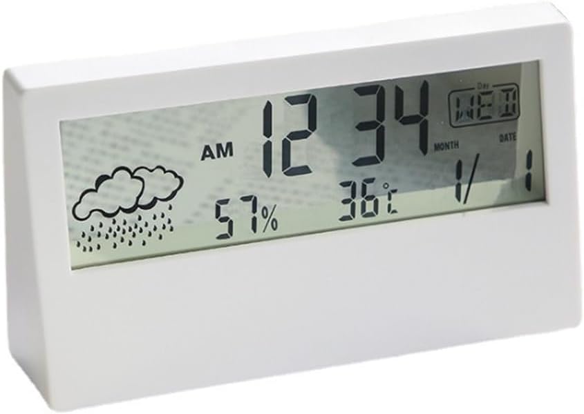 Search for humidity monitoring and measure the air conditioning in real time.With a bracket, it can be placed on the table.Also display the temperature, humidity, and time.Low power consumption, high stability and accuracy.Thermometer makes your life easier and suitable for many places.Material: plasticDimensions: 13.3x7.3x3.2CM Package: 1 * thermometerIndoor/outdoor temperature and humidity, air pressure and history, lunar phase, calendar, atomic clock, weather forecast and trends, temperature and humidity alerts, etc.