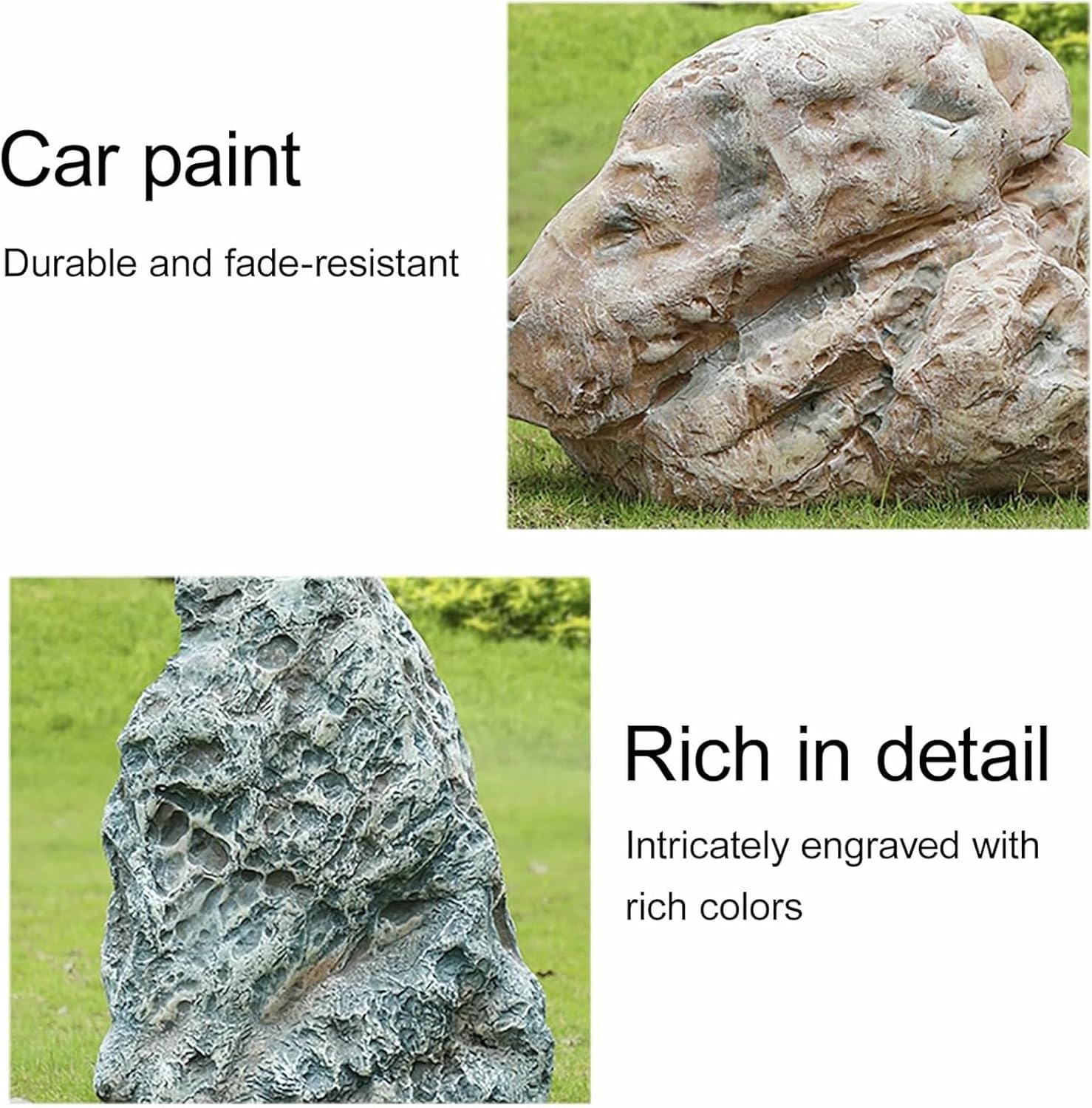 ——Made of fiberglass, these artificial stones are incredibly lifelike, with slightly different colors and textures that complement natural stone. This meticulous attention to detail ensures each piece looks natural and enhances the overall aesthetic of your outdoor space.>>Made of fiberglass, these artificial stones are incredibly lifelike, with slightly different colors and textures that complement natural stone.>>The irregular artificial landscape stones are easy to maintain by simply washing with water or wiping with a cloth or feather duster.>>They can be used as realistic props in photo studios, theaters, or film sets, serving as versatile backdrops.>>Simply place the realistic artificial rock cover on the ground to instantly transform your landscape.>>Weather-resistant, suitable for all climate zones nationwide.Product Specifications:*Name: Simulated Artificial Landscape Stone*Material: Fiberglass*Technology: Hand-Painted*Applications: Ideal for enhancing the aesthetics of a variety of spaces, including hotels, parks, shopping streets, squares, riverbanks, stations, auditoriums, entertainment venues, residential courtyards, exhibition halls, supermarkets, offices, and homes.Packing Content: 1 artificial stone