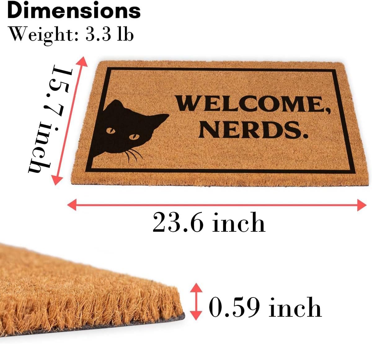 ☆☆☆DOORMAT DETAIL:☆☆☆ Made of 100% Natural Coir (with Anti-Slip PVC Back) -Measures 15.7" long x 23.6" wide x 1.5cm high -Packing list: 1 X Coir Doormat -Clean by shaking out. Coir fiber is natural fiber extracted from the outer husk of coconuts and is widely used in products such as floor mats, doormats, brushes and mattresses. Coconut Coir is the fibrous material found between the hard, internal shell and the outer coat of a coconut. The coir fibers are tough and strong with excellent scraping properties, helping remove dirt and moisture from any footwear. The coir fiber is wildly known for its excellent water-resistant capabilities and is elastic enough to twist without breaking. Light shedding may naturally occur during shipping. Depending on floor surface, the print on the vinyl (under the doormat) will lightly wear off over time. Warning to prevent falls: Ensure doormat lies completely flat before using it. It is easy to clean. Just shake briskly, or scrape mud off. For a deeper clean, wipe with a damp cloth and mild soap, or use a garden hose to rinse it. Allow your mat to air dry before using it again. If you have any questions about our product, please contact us and we will reply email within 24 hours. We offer you the best service! Thank you for being our customer.