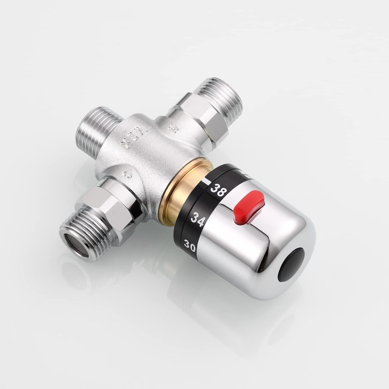 Product Description Color: Chrome Name:thermostatic valve Cartridge : Shape Memory Alloy (SMA), precise control and more durable Connections : 1/2" male thread Inlet Cold Water Temperature Requirement : 34-84¨H/1-29¡æ Inlet Hot Water Temperature Requirement : 113-210¨H/45-99¡æ Outlet Water Temperature Range : 68-119 ¨H/20-48¡æ Step Adjustment Notice : Press Red Button if you need water higher than 100¨H or 38¡æ Weight:410g Packing list:1*valve Buy from Ciencia Made from Brass,ensuring quality and longevity Top quality Chrome finish 30-day money back guaranteed Technical Details Item Weight:1.01 pound Product dimensions:3.5*1.8*4.3 inch Finish:Chrome Material:Brass body,Plastic handle Valve Type:thermostatic valve