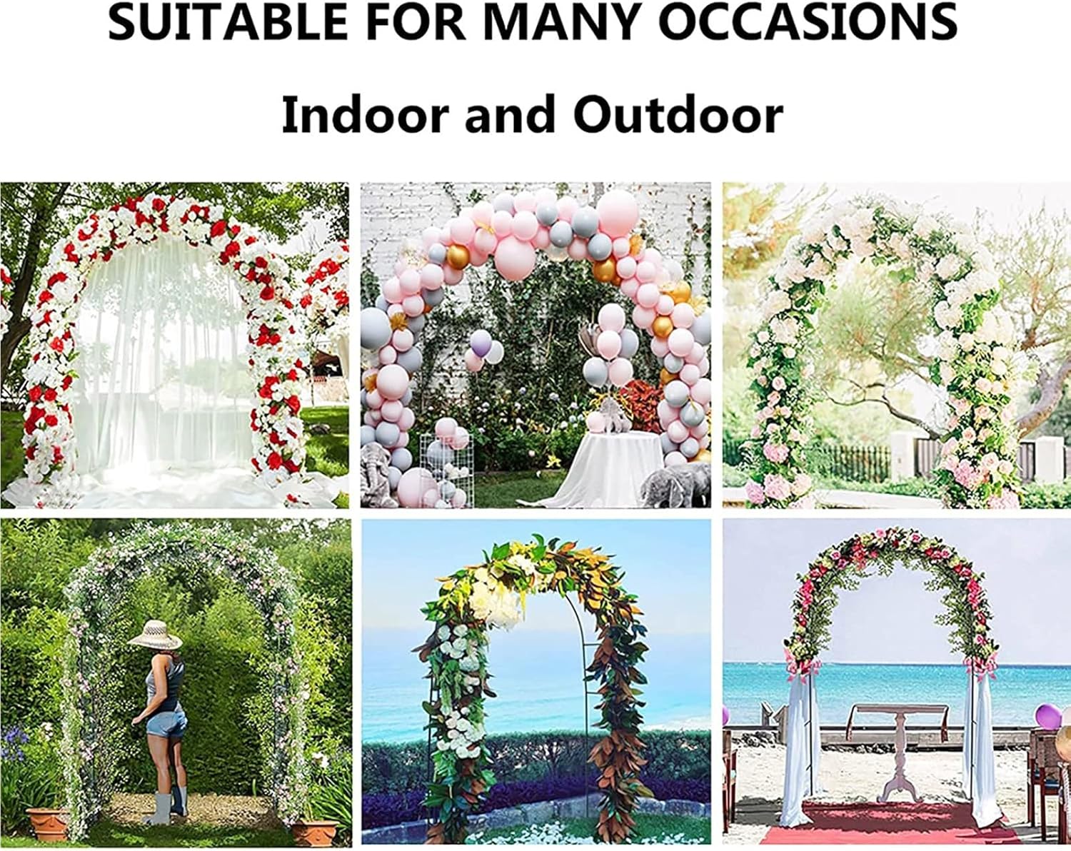◎ Elegant beautiful flower design, delight your garden and backyard.◎Perfect for climbing plants, enhance your patio with a beautiful garden arbor.◎ It is suitable for weddings, garden parties, balcony, outdoor receptions, holidays, shopping malls.◎ The base is equipped with a bracket, which is easy to install, adapt to any environment and place, and can be moved in the garden if necessary.◎ Can easily be linked together to make a longer arch.Specification:Name: Decorative Garden ArchColor: White, Black, GreenMaterial: IronPipe diameter: 19mmSize: ( W x H)140x230cm/55x90in,180x220cm/70x86in,200x 230cm/78x90in,240x220cm/94x86in,260x230cm/102x90in,280x220cm/110x86in,300x220cm/118x86in,350x220cm/137x86inSide width: 40cm/15.7inNotice:* If a flower stand is used, it should be used in the current season. In the season when the flower stand is not needed, the flower stand can be removed and placed in a dry and ventilated place. Because it can prolong the service life of our flower stand.* Due to the manual measurement of the size, there may be an error of 1 to 3 cm. Please refer to the actual product. Thank you for your understanding.* Although we display the closest color possible, due to differences in computer monitors, there are likely to be some color variations.* If you have any questions, please contact us immediately and we will reply you within 24 hours.
