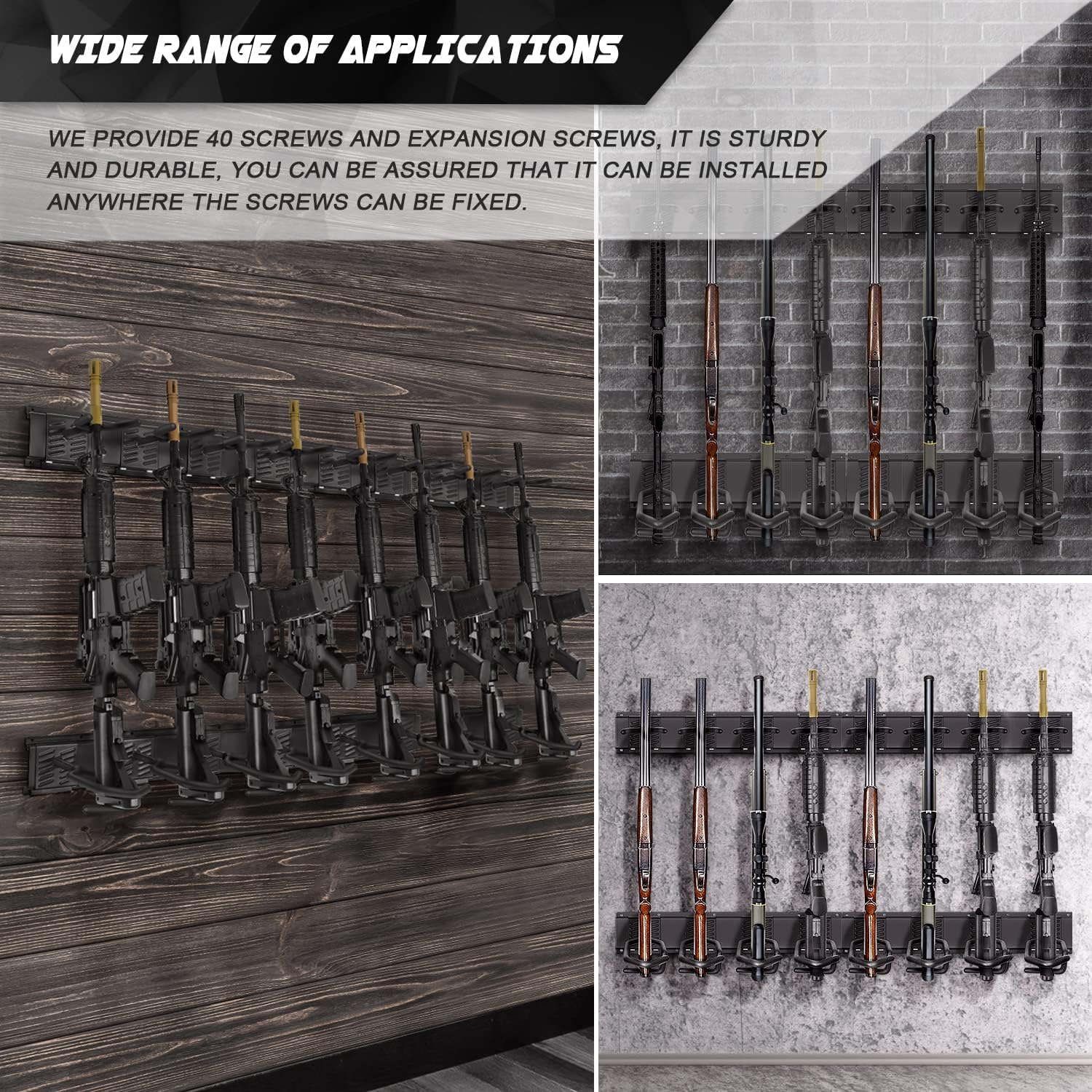 Product descriptionGOHIKING Gun Rack Shotgun Hooks Any guns Rifle Shotgun What's Included1 x Steel Rifle & Shotgun Free-Standing RackProduct FeaturesGOHIKING Gun RackOur upgraded, freestanding guns rack has the capacity to hold 6 rifles/shotguns that are at least 31 inches in overall length & 8 handguns.Welded Handgun RackEasily accommodates 8 handguns without weapon lights.Spaced far enough from the barrel rack so it will not interfere with any barrels.Frame DurabilityRubber-encased prongs throughout prevent scratches to your guns, while the powder-coated frame provides increased wear-resistance.Rigid StructureDesign Along with adding two more legs to the foundation, we repositioned the joints and tightening screws on the frame to increase the overall stability of the rack.Simply DesignedEasy to put together right out of the box, this foldable stand makes it simple to take it with you on your next range day without additional tools.Remember to tighten screws after transportation to ensure stability.Technical SpecificationsOverall SizeFull Size | 32" x 25.5" x 29.5"Folded SizeFull Size | 32" x 25.5" x 16"Minimum length from stock to barrel | 31 Inches2 x Handgun Rack Size (each) | 2" x 7.5" x 6"Handgun Slot (each) | 2" x 1.5" x 3.5"Stock Support | 2.8" x 6.5"Barrel Support | 2.25" x 3"Frame Thickness | 0.75"Case Material100% Powder-Coated Steel6 Rifle Slots8 Pistol SlotsRubber Encased ProngsFoldable