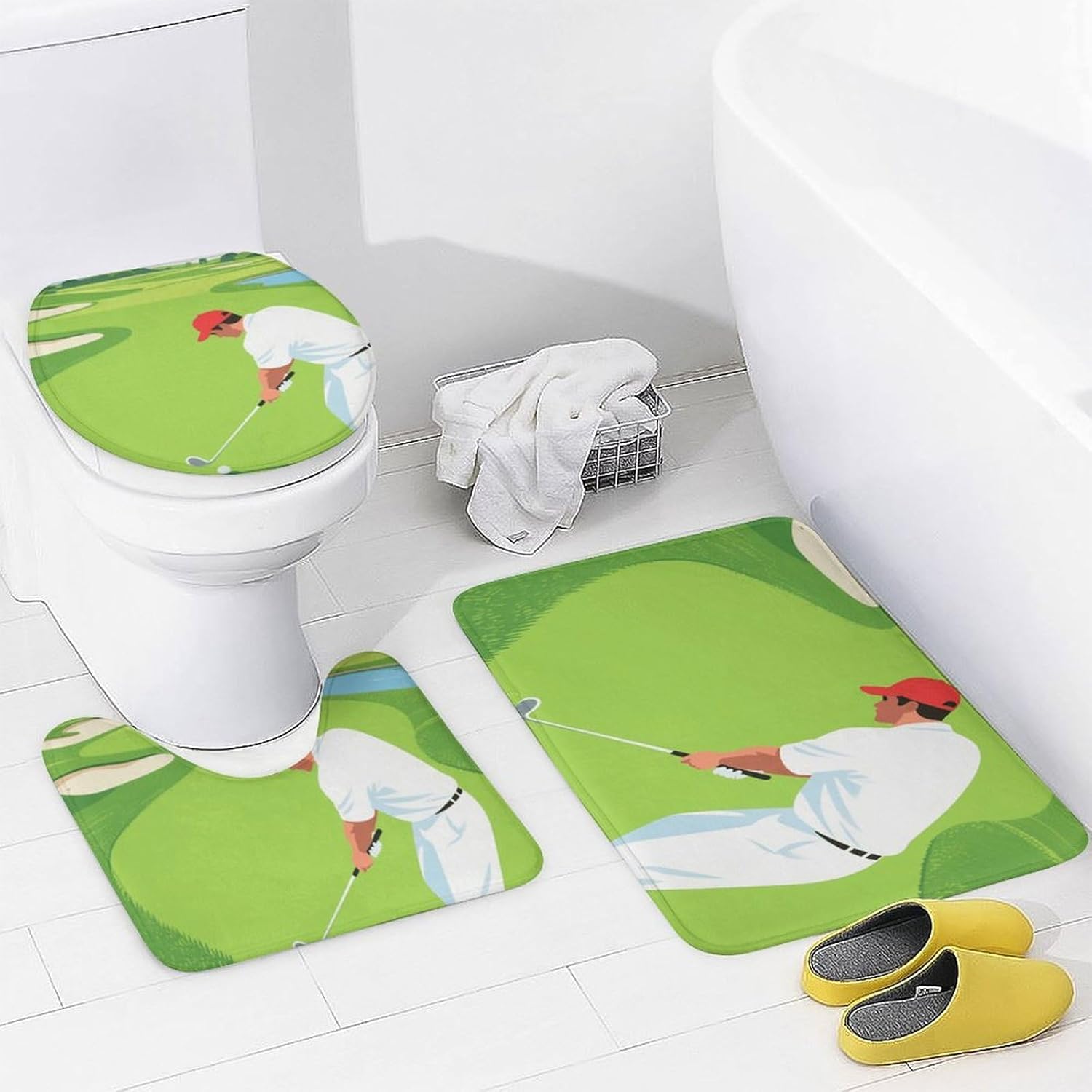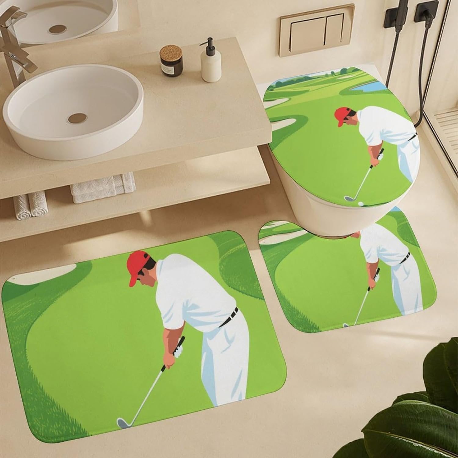 Welcome to a Cozier, More Organized BathroomComplete Bath Mat Set Cute Shower Curtain Set Bath Accessories Set Bathroom Set with Shower Curtain Bathroom Decor Soft Bath Mat Bathroom Decor Set Bathroom Rug Bathroom Floor Mat Housewarming Gift Bathroom Vanity Mat Luxury Bathroom Mats Set for Tub Side Bath Mats for Bathroom SetLuxurious Comfort UnderfootOur thick, velvety coral fleece bath mats are exceptionally soft and gentle on your skin. They are highly absorbent, quickly wicking moisture away from your feet after a shower or bath, leaving your bathroom floor dry and preventing slips.Functional Protection & PrivacyThe included waterproof Oxford fabric shower curtain is a reliable barrier against water spray, protecting your bathroom from moisture. It ensures privacy while its sleek look complements most decors. The matching toilet lid cover adds a finished, hygienic touch to your toilet.Thoughtful Details for Your ConvenienceThe modern shower curtain set feature a secure non-slip backing to keep them firmly in place. The set comes ready to use with 12 durable C-shaped plastic hooks for the curtain. Achieving a put-together bathroom has never been easier.Easy Care for Lasting BeautyMaintaining a fresh, clean bathroom is simple. The mats fluff up nicely after washing. We recommend gentle hand washing to best preserve the fabric's softness and color vibrancy. The shower curtain can be wiped clean with a damp cloth.Create Your SanctuaryIdeal for master bathrooms, guest suites, apartments, dormitories, or rental properties. This set is the perfect gift for housewarmings, new homeowners, or anyone looking to upgrade their bath space with minimal effort and maximum style.