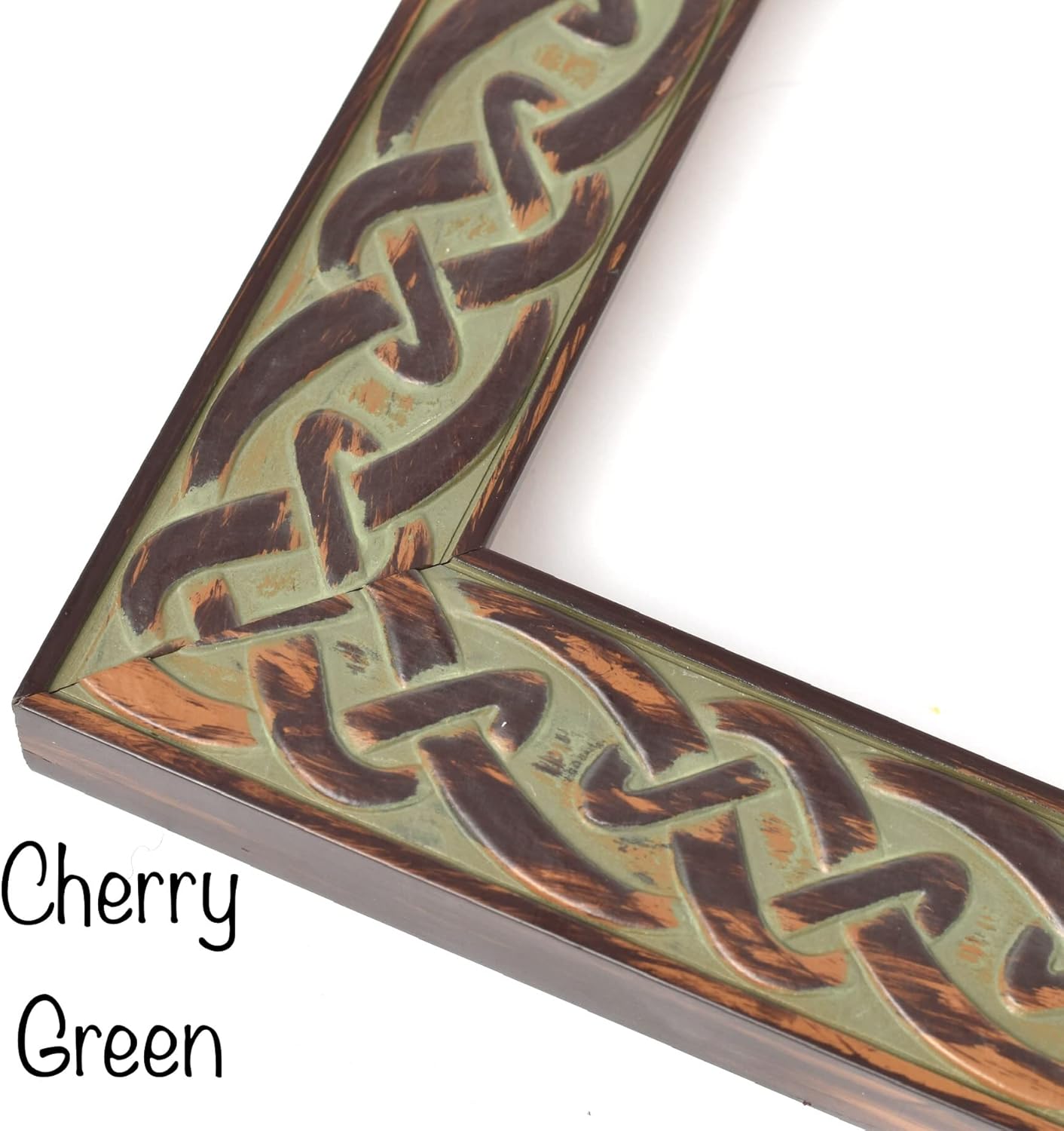 THE STYLE: Antiquity meets ancient Celtic in this collision of modern and classical. Whether you choose cherry green, or the antique white you are sure to catch the eye with this frame. FRAME SPECIFICATIONS: Frame Width: 1 3/4” Frame Height: 7/8” Rabbet Depth: 1/2” Rabbet Width: 1/4"
