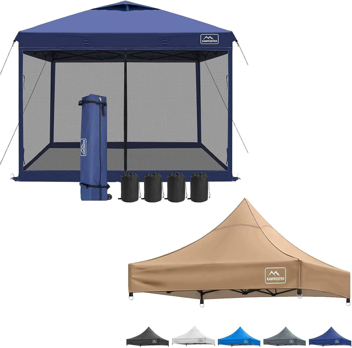 KAMPKEEPER 10x10 Pop Up Canopy with Mosquito Netting,Instant Outdoor Screen Tent(Navy Blue) Canopy Replacement Top (Khaki)