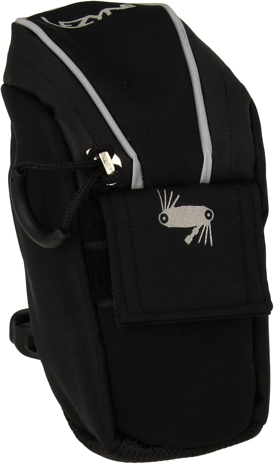 Tucked underneath your saddle, the Lezyne Micro Caddy is perfect for taking along on road rides or mountain biking. With enough space to hold all of your flat repair tools, and perhaps a nutritional or two, The Micro Caddy is the perfect ride companion. The neoprene band wraps around the saddle rails, which dampens noise and vibration, creating a quieter more secure connection. Water resistant zippers fend off yucky weather, while the reflective stripes fend off cars. Weight: 80g. Cargo: 0.2L. Dimensions: 140x55x55mm.