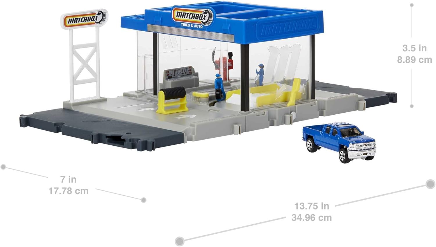 | Included Components | Includes 1 Matchbox™ Action Drivers™ Matchbox™ Auto Shop™ Playset and 1 Matchbox™ Chevy® Silverado™. |