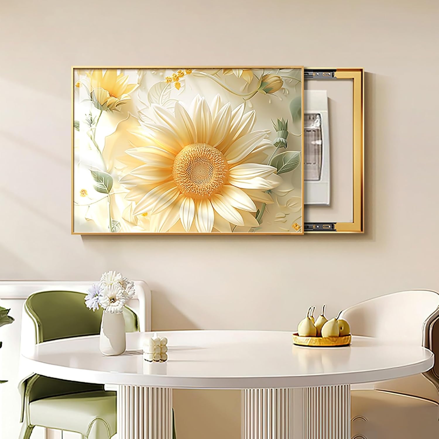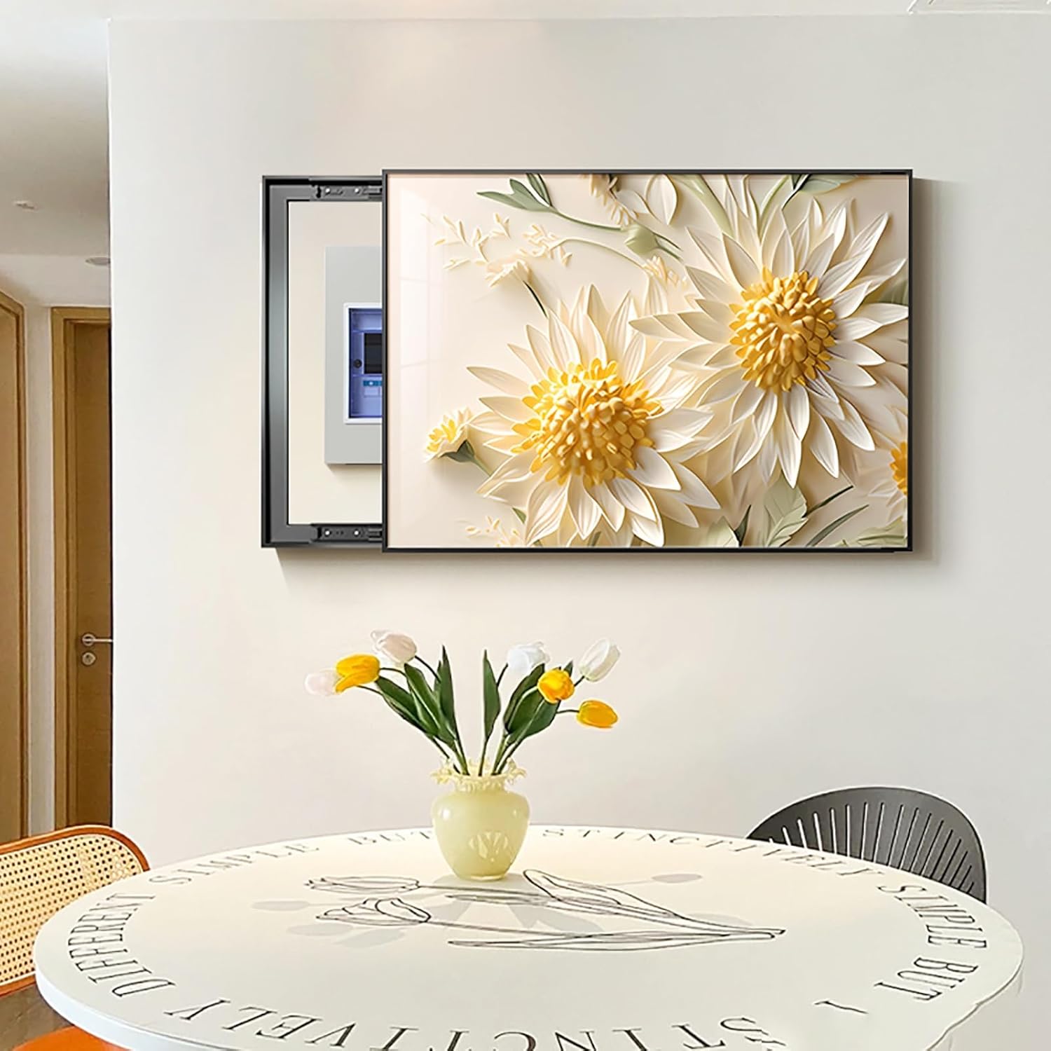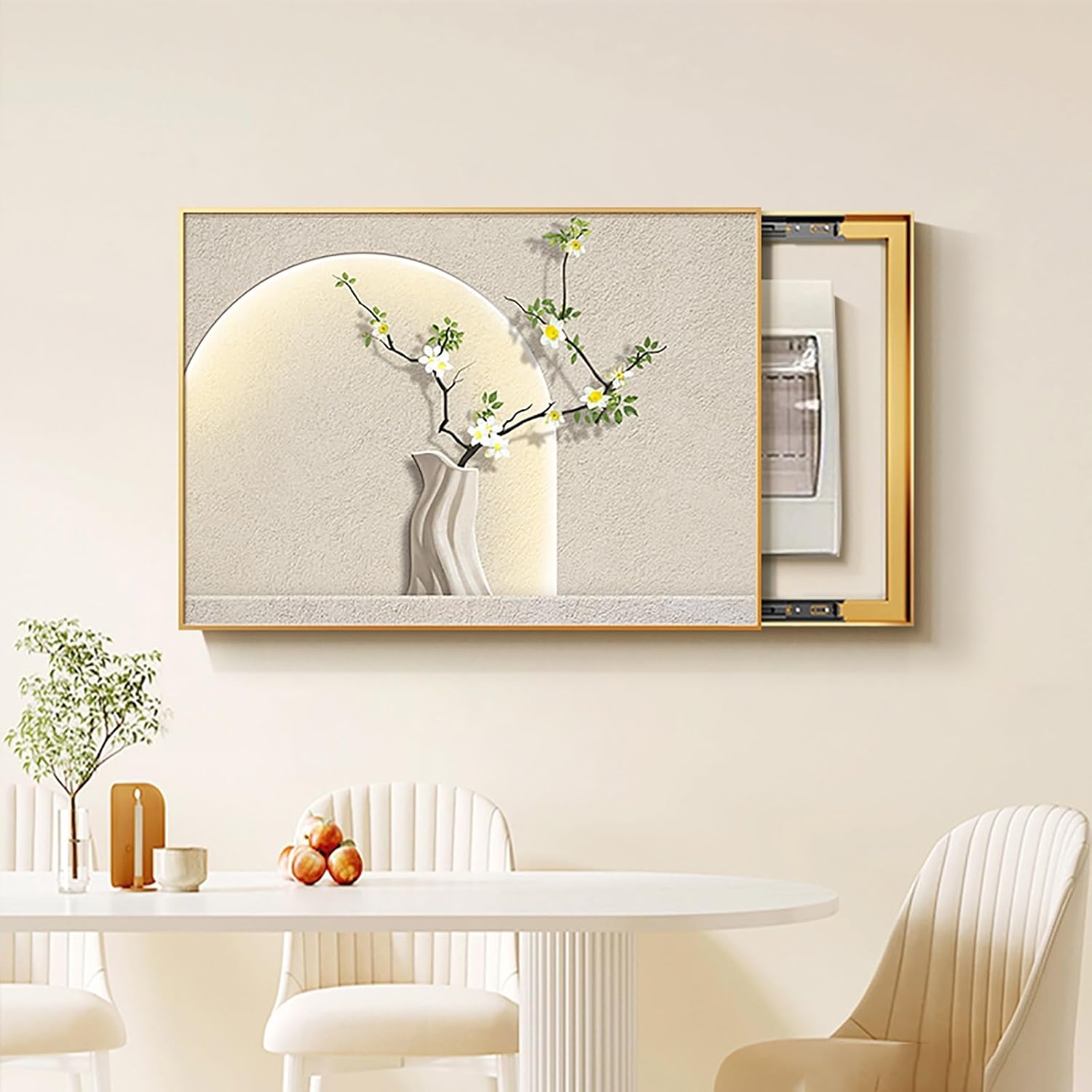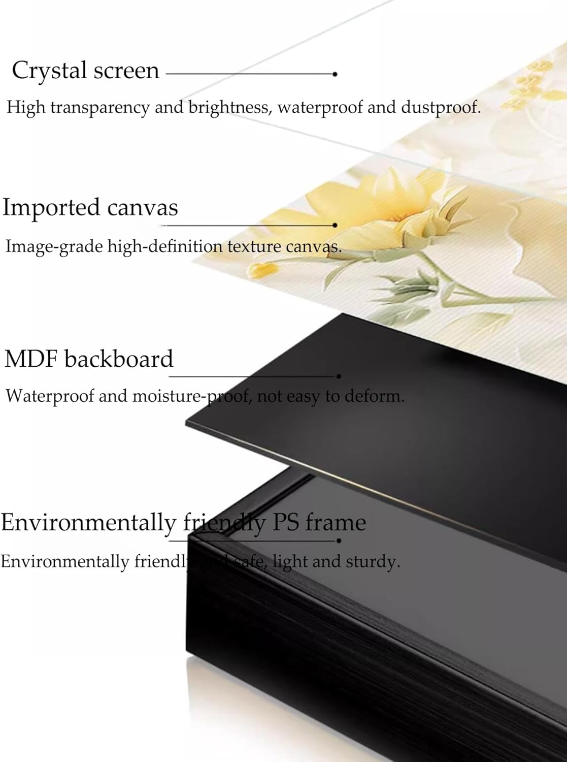 Product name: Electric meter box decorative paintingProduct size:45x35cm , 50x40cm , 55x45cm , 60x40cm , 60x50cm , 70x50cmPicture core material: Crystal filmFrame type: Black frameCombination form: Top cover-crystal screenFunction: Blocking and beautificationApplicable space: Electric meter box