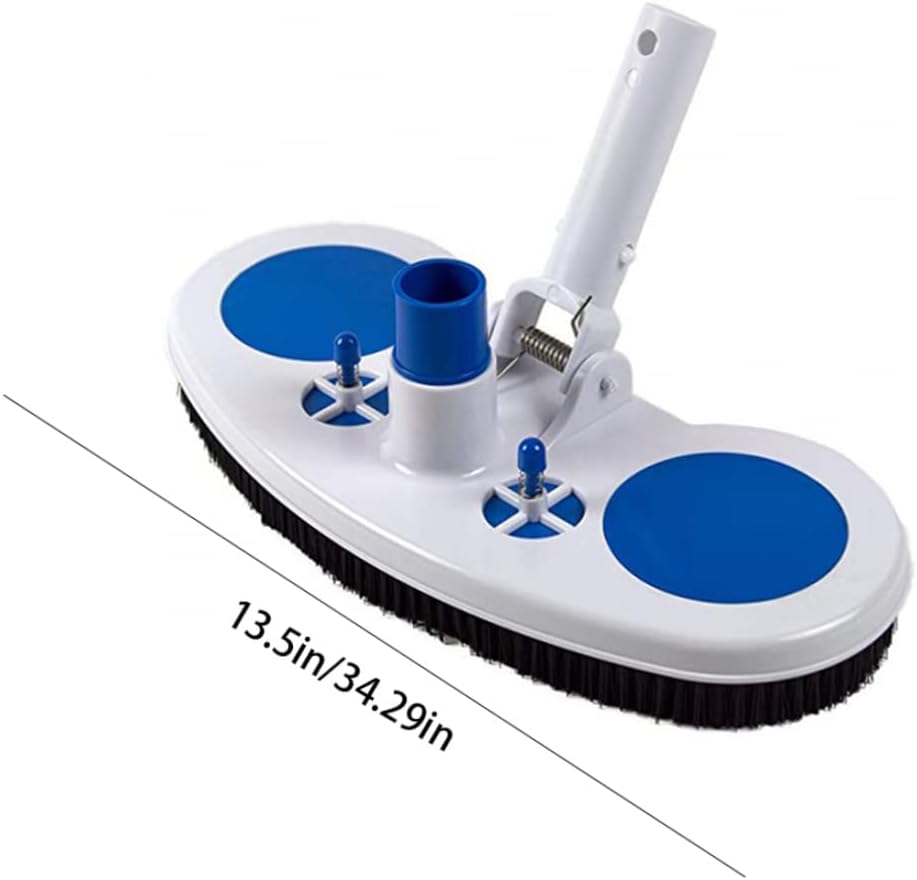 Pool Brushes,Pool Cleaning Brush Vacuum Suction Head with Nylon Bristles Swivel Hose Connection for Removes Debris Cleans Floors 13Inch Description This is a 13 inch swimming pool vacuum head with nylon brush and rotating head hose connection, accepts 1-1/4-inch and 1-1/2-inch hoses. The heavy objects stay in contact with the bottom of the pool, while the sturdy nylon bristles can peel off the surface because the vacuum can quickly remove debris from floors, walls, corners and slopes. Features Pool vacuum head -Color:As shown. -Material:ABS. -Size:35x20x7 cm/13.78x7.87x2.76 inch. Specifications: Vacuum is very suitable for vinyl-lined swimming pools, and the head includes 2 air release valves to release excess suction when operating the swimming pool floor. Package Including 1 * Pool vacuum head