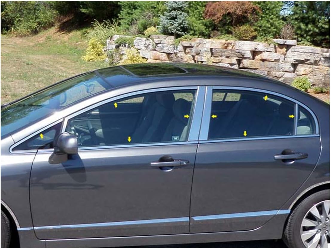 QAA is Compatible with 2006-2011 Honda Civic 6 Piece Stainless Pillar Post Trim PP26215