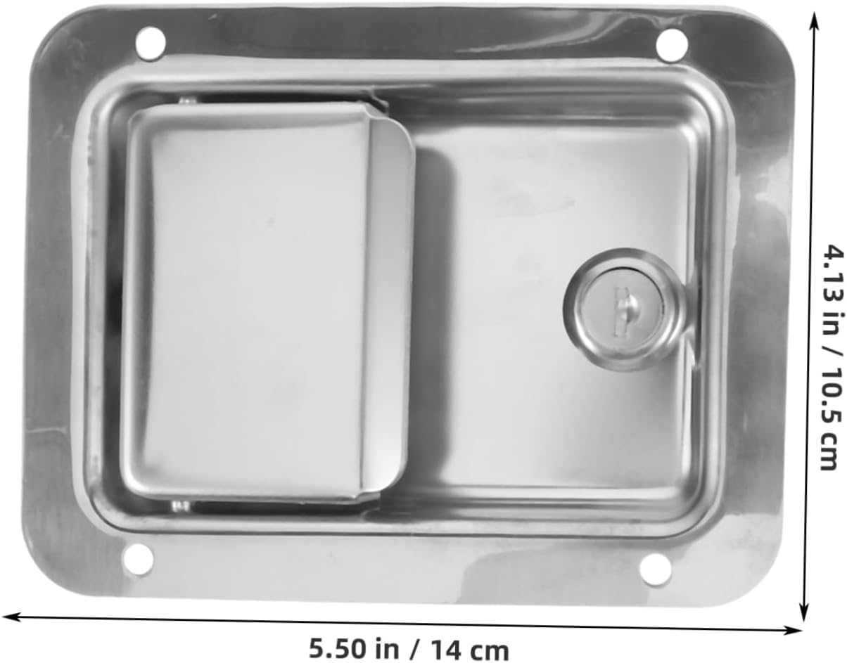 Package Include 1 x panel lock with keys Features -Size:14.00X10.50X4.00cm/5.50X4.13X1.57in Truck Accessories -Material:Stainless steel Latch Locks -Color:Silver Handle Lock -Designed with and reliable materials to ensure durability and safety RV Door Latch. -This lock can be used in a variety of situations, making it a practical choice for different needs Travel Trailer Door Latch. -The design of this car is specifically tailored to fit car toolboxes RV Lock. -The lock is incredibly easy to use, simply press to lock and secure your valuable items lock. -With its sturdy and durable construction, this lock provides enhanced security for your valuable items Trailer Lock.Goods DescriptionTrailer Lock The product is designed to provide a sturdy and durable for ensuring the safety of valuable items.Engineering Vehicle Lock. Stainless Steel Lock Its robust construction and reliable performance make it an for safeguarding valuable items.RV Door Locks It is specifically designed for use in trailers and special vehicles.RV Door Lock Fittings The panel lock ensures secure of the panels, providing added protection.Camper Door Lock With a compact size, this lock is suitable for use in automotive toolboxes