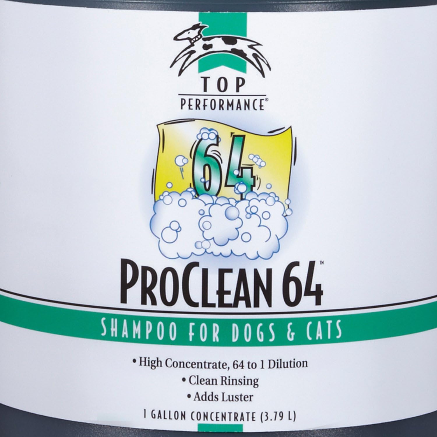 Top Performance ProClean 64 Shampoo is an ultra concentrated formula of our popular ProClean shampoo. An extraordinary value, one gallon dilutes 64:1.• Mild, coconut scented • Thoroughly cleans coats • Adds shine and lusterIngredients: Sodium lauryl sulfate, water, sodium laureth sulfate, cocamidopropyl betaine, glycol stearate, fragrance, methylchloroisothiazolinone, methylisothiazolinone, sodium chloride, citric acid, FD&C yellow no. 5, FD&C blue no. 1