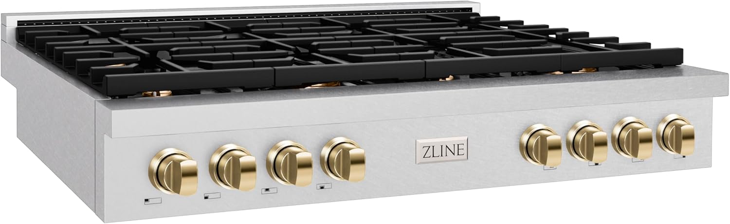 Luxury isn’t meant to be left desired — it’s meant to be attainable. The ZLINE 48 in. Autograph Edition Paramount Gas Rangetop with 8 Burners and Porcelain Cooktop in Satin Stainless Steel with Polished Gold Accents (SRTSZ-48-G) features 8 Italian-made auto-reignition burners, a hand-crafted porcelain cooktop, enhanced cast iron grates, and elegant polished gold knobs allowing you to master every meal. With a modern, timeless style and refined functionality, ZLINE Paramount Gas Rangetops are masterfully crafted to deliver an elevated culinary experience.