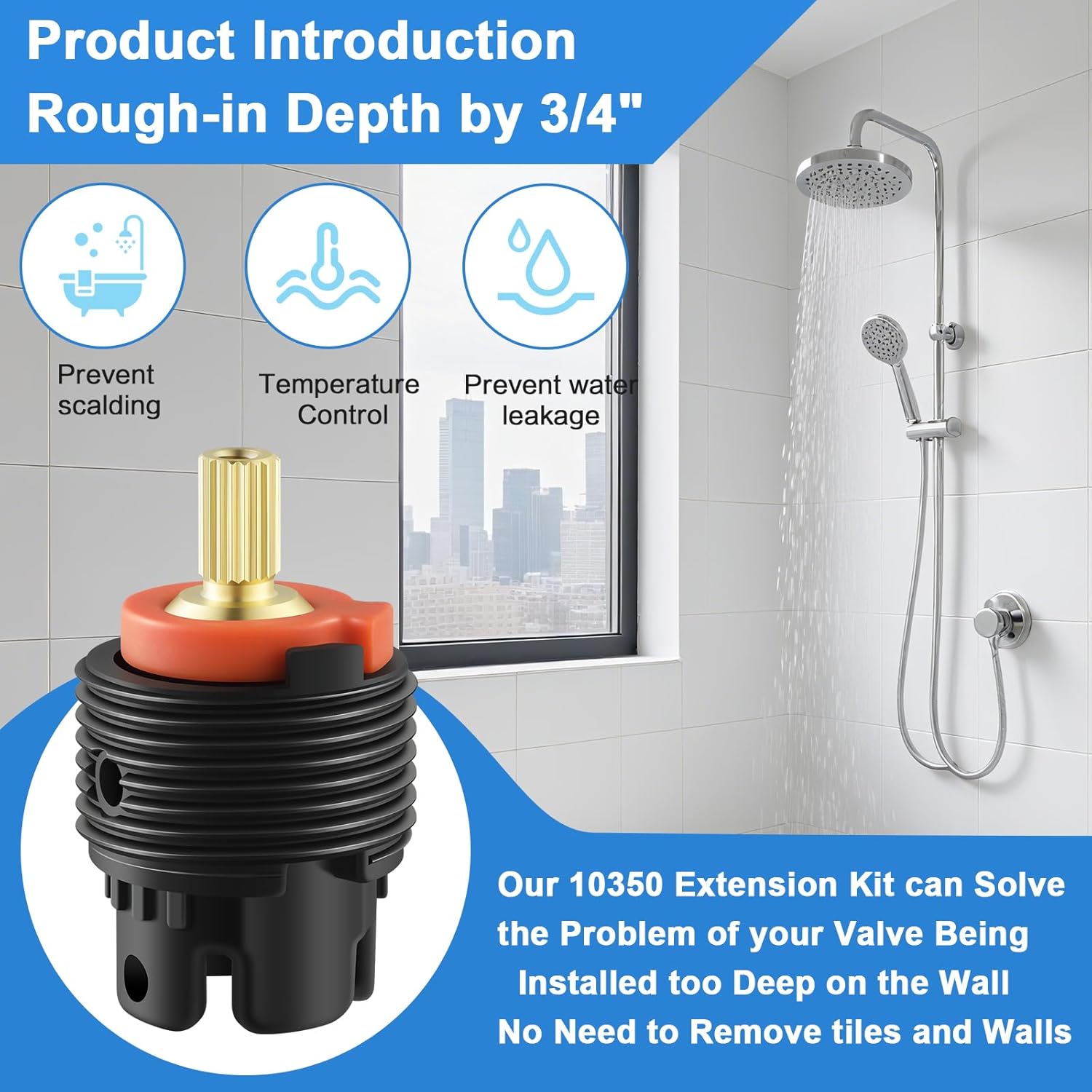 Our Shower Valve Cartridge Extension Kit Depth by 3/4", Compatible with Kohler GP800881, K-8305 and K-28305 CartridgeCompatible with Rite-Temp Shower ValveFeatures:Extension Depth by 3/4", Specifications:Material: Plastic, BrassColor: Black
