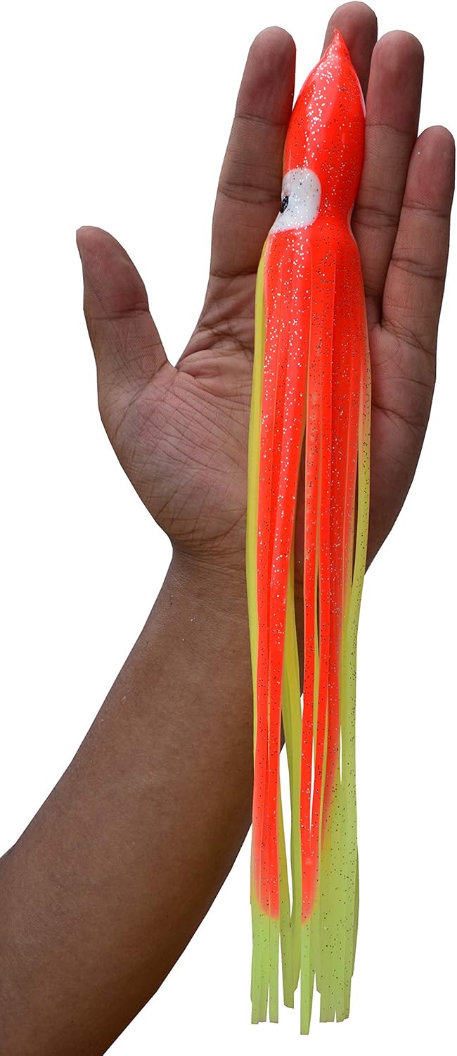 Fishing Octopus Squid Skirt Lures designed as imitate octopus or squid. The hollow design in the middle of the bait can reduce the weight and make it float more freely in the ocean. The eyes of octopus bait are made of fluorescent materials, and the body is made of a lot of Proprietary Vinyl Material, so that no matter in shallow water or sea, it can glitter and catch prey better. Warm reminder The multi colors are showed in the photos are packed randomly, so different package may have different color. br> Luengo Octopus Baits feature the proven color patterns and durability to help you succeed in any fishing conditions. These soft,supple lure are ideal for a number of different situations and species. Its lifelike action with multi colors which attracts more fish from greater range. TO better serve our customers, Luengo has developed its own line of high-quality fishing tackles. You will find all of the latest and most popular styles in our shop. Enjoy your shopping!.
