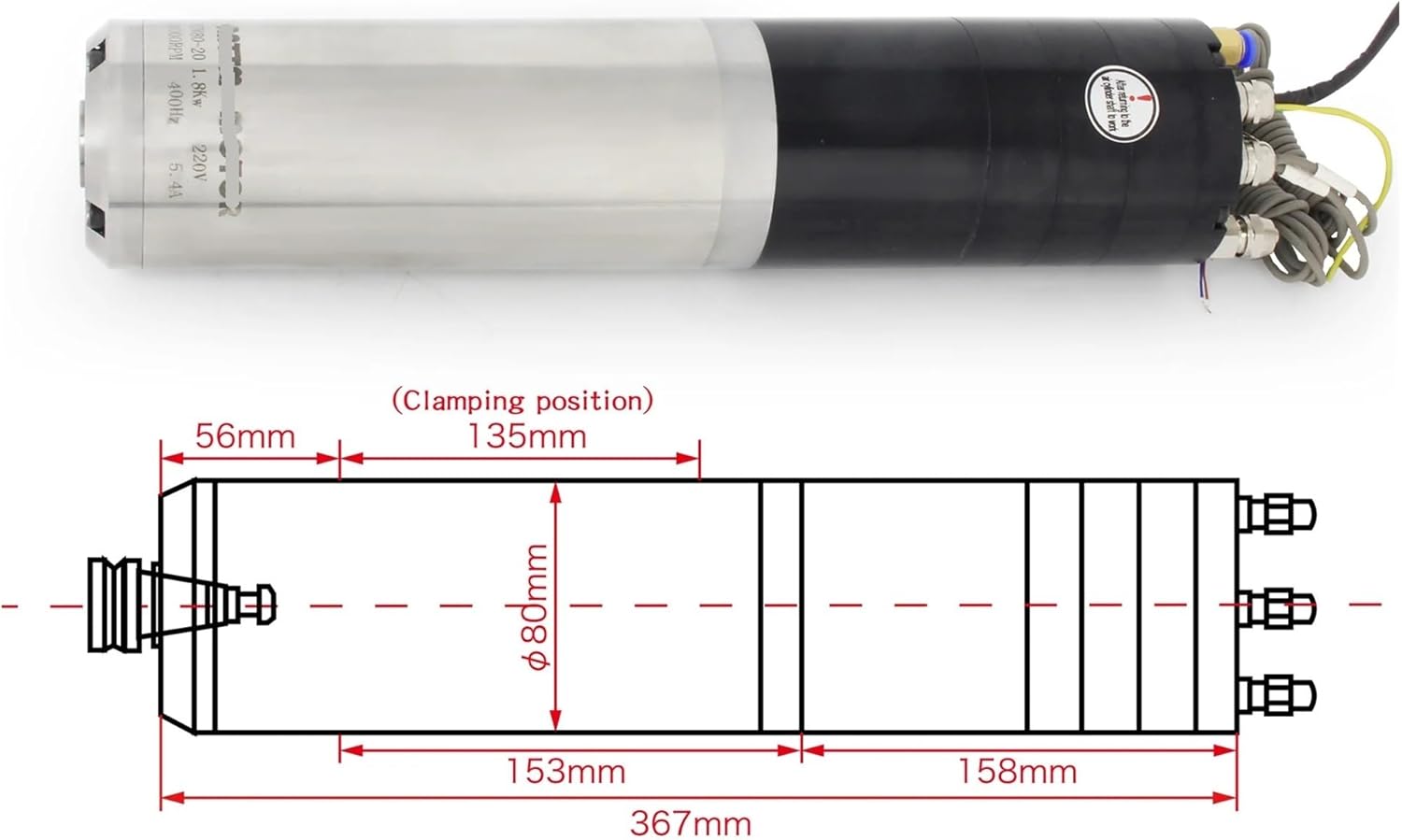 Slotting Cutter ArborsPackage includes:1x 2.2KW ATC water-cooled spindle motor 220V ISO20 5.4A1 x 2.2KW inverterSpindle modelRTM80-20-24Z/2.2 220VVoltage220 voltsMaximum speed24000 rpmRated frequency400 HzCurrent5.4AMovement planeLevel 2Rated Power2.2 kW (S1)Peak Power2.2 kW (S6)Rated torque0.59 NmPeak Torque0.84 NmTechnical ParametersSpindle dust blowing/sealing gas pressure (MPa)0.2-0.25Spindle gas seal gas flow(L/min)65±10 (when working)Cooling water pressure (MPa)>=0.25Cooling water flow rate (L/min)>=2.5Cooling water temperature24-28Spindle static pulse (µm)<;=3Spindle vibration (mm/s)<;=0.8Spindle diameter (mm)Diameter 80 (0/-0.02)Motor winding withstand voltage test (V/M)1000V/1 minute withstand voltage testTool interfaceISO20Inverter Specifications2.2 kW (220 V)Origin: Mainland ChinaDrive mode: motorMaximum torque: 0.84 NmOperating speed: 24000rpmModel: RTM80-20-24Z/2.2 220VCooling method: water coolingSize: 80x379mmPower: 2.2KwNose: ISO20Balance level: G1.0Current: 5.4AVoltage: 220VBearing: 2x7006+1x7005