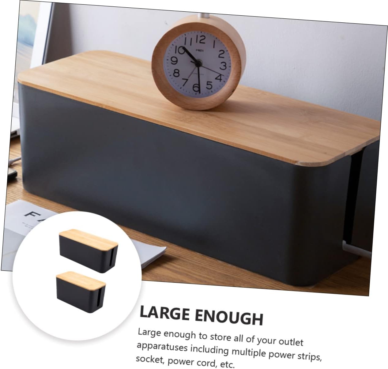 Package List 2 boxes Features - Size: About 23.5X11.5X12.2cm/9.25X4.53X4.8inch; 32.00X13.50X13.00cm/12.58X5.31X5.11inch socket storage box. - Material: Wood, plastic home wire container. - Made of plastic and wood material durable and practical for use cable management box. - anti-electric socket box - They are able to make the of room, at the same time help you find cables easily wire storage box. - Great to use on the table, in the office, in the study, in the living room or in the corner etc wire container. - Large enough to store all of your outlet apparatuses including multiple power strips, socket, power cord, etc socket box. - Put it on your desk or at the corner of walls for collecting and organizing cables socket protection case.Goods Informationwire storage is one of for you.wire container Are you looking for a professional, yet cable storage box? Are you in search of a sturdy, trustworthy cable storage box that can do multiple jobs at once? , ! Our professional cable storage box must meet your needs