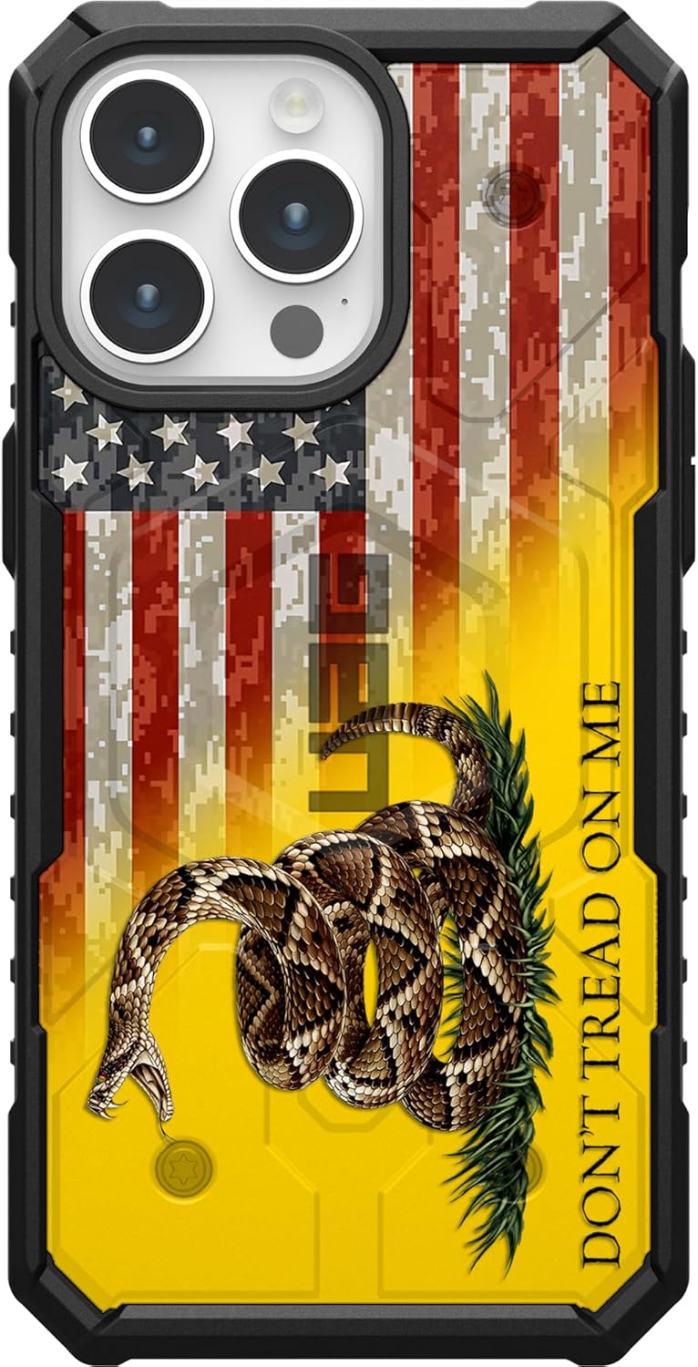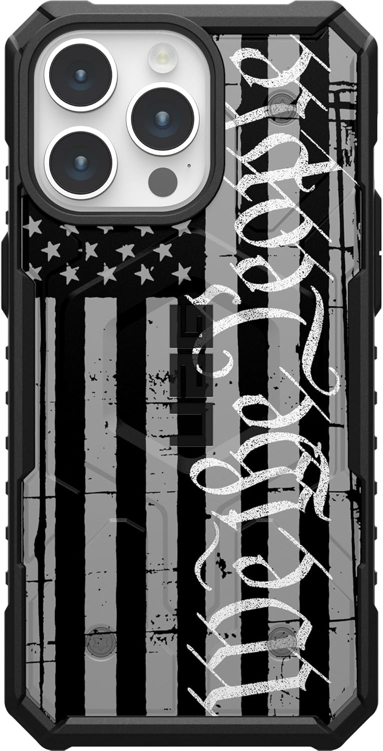 This Limited Edition UAG Urban Armor Gear Case with MagSafe compatible with Apple iPhone 15 Pro Custom Printed by EGO Tactical is a armor shell and impact resistant soft core case which meets military drop-test standards (MIL STD 810G 516.6) with Extremely Durable Direct UV-Printed Customization by EGO Tactical features oversized tactile buttons, easy access to touchscreen and ports, scratch resistant skid pads and screen surround, feather-light composite construction, snap-on design for easy installation and removal, and slides easily in and out of pockets without snagging. Designed and Printed in the U.S.A.!