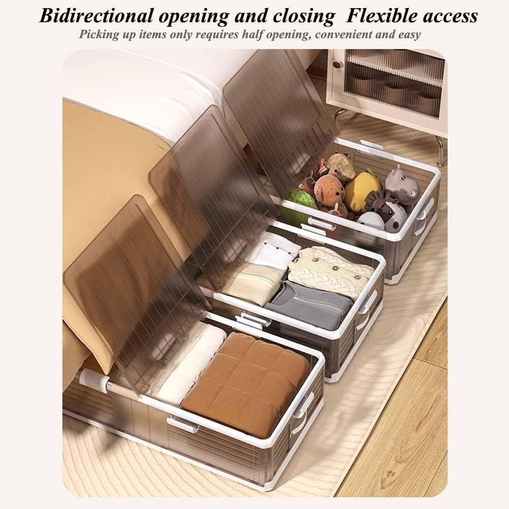 ➤ Perfect Storage Protection: The under the bed storage bins fit seamlessly into tight spaces under your bed, sofa or wardrobe. The elevated design protects stored items from dust and dirt.➤ Folding Storage BinsUnder bed storage bins is collapsible and install-free. It allows to fold flat when not use and will not take up space.It could be assembled in only few minutes without complicated steps.➤ Bi-directional Door OpeningsDesigned with transparent bi-directional lid, dust-proof and is convenient to see inside. Enable to open from both side and do not need to slide out the whole closet organizer system for taking stuff.➤ Specifications:Material: PP PlasticColor: Transparent BrownStyle: Flip coverMaterial: PolypropyleneStackable: YesFoldable: YesLockable: YesOpening Ways: Both SidesNumber of Wheels: 8Product Dimensions: (Length x Width x Height) 100x52x15.5cm/39.4x20.5x6" , 100x52x19.5/39.4x20.5x7.7" , 100x52x23.5/39.4x20.5x9.3" , 100x52x26.5/39.4x20.5x6" 9.8➤ Packaging Options: Bed bottom storage box x1; Bed bottom storage box x2; Bed bottom storage box x3;➤ Service: If the product has any quality problems, or if you think the product is inconsistent with our description, please feel free to contact us, We will provide you with a satisfactory solution.