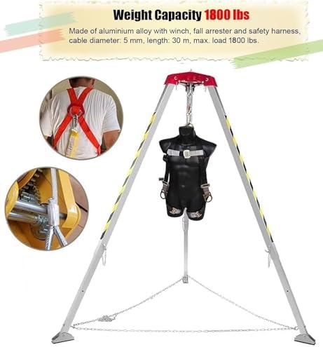 Emergency Fire Rescue Rope System: When it comes to entering confined spaces, you need a reliable rescue and retrieval device that you can rely on to get you to safety when the situation requires it, and the tripod kit does just that! -- We are committed to those fall protection solutions that make your work easier and more efficient, while maximizing your safety. Specifications: Material: Aluminum Working Height: Adjustable Range: 1.25m to 2.15m Working Load: 300KG Gear Ratio: 5:1 Winch Blocking Force: 22KN Cable Length: 30MB Blocking Force: 500KG Cable Diameter: 5mm/0.2in Lifting Weight Limit: 1600N Features: Large load capacity to ensure user safety. The top plate is processed with die-casting technology for a long service life. Upper and lower self-locking devices, the winch cable is replaceable. The height can be adjusted according to the working situation, up to 2.14m. The foot support belt can improve stability and strengthen the entire system. Stainless steel ring protection chain, with flexibility and stronger tensile strength. Bracket accessories, easy to install. Package Contents: 1 × Confined Space Tripod 1 × Safety Belt 1 × 30m Fall Arrester Notes: 1. Due to manual measurement, the product size may have an error of 1-2cm from the actual product. 2. The product is photographed in real life, but due to light, equipment, shooting angle, computer resolution, etc., the actual product received may be different from the photo, the actual product shall prevail.