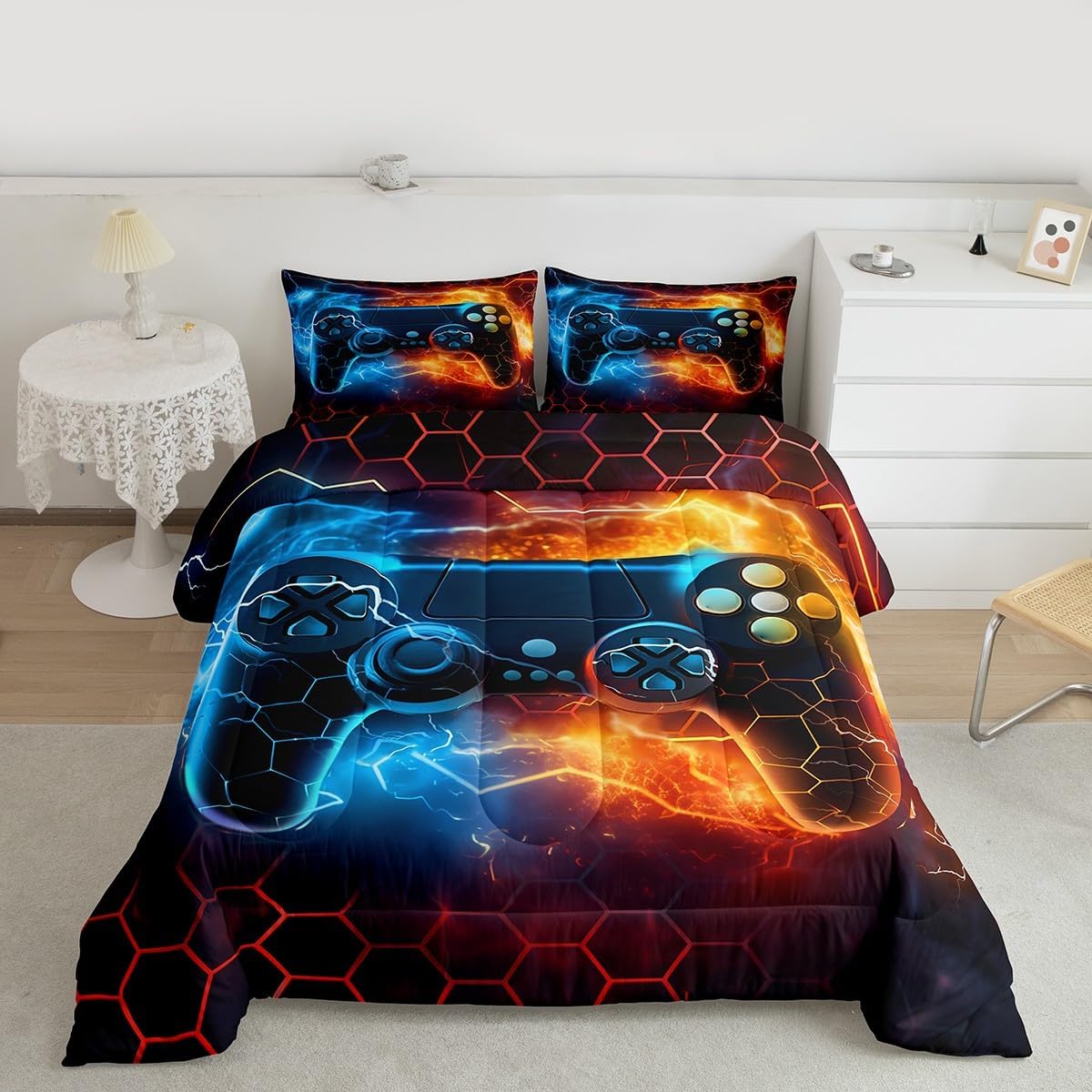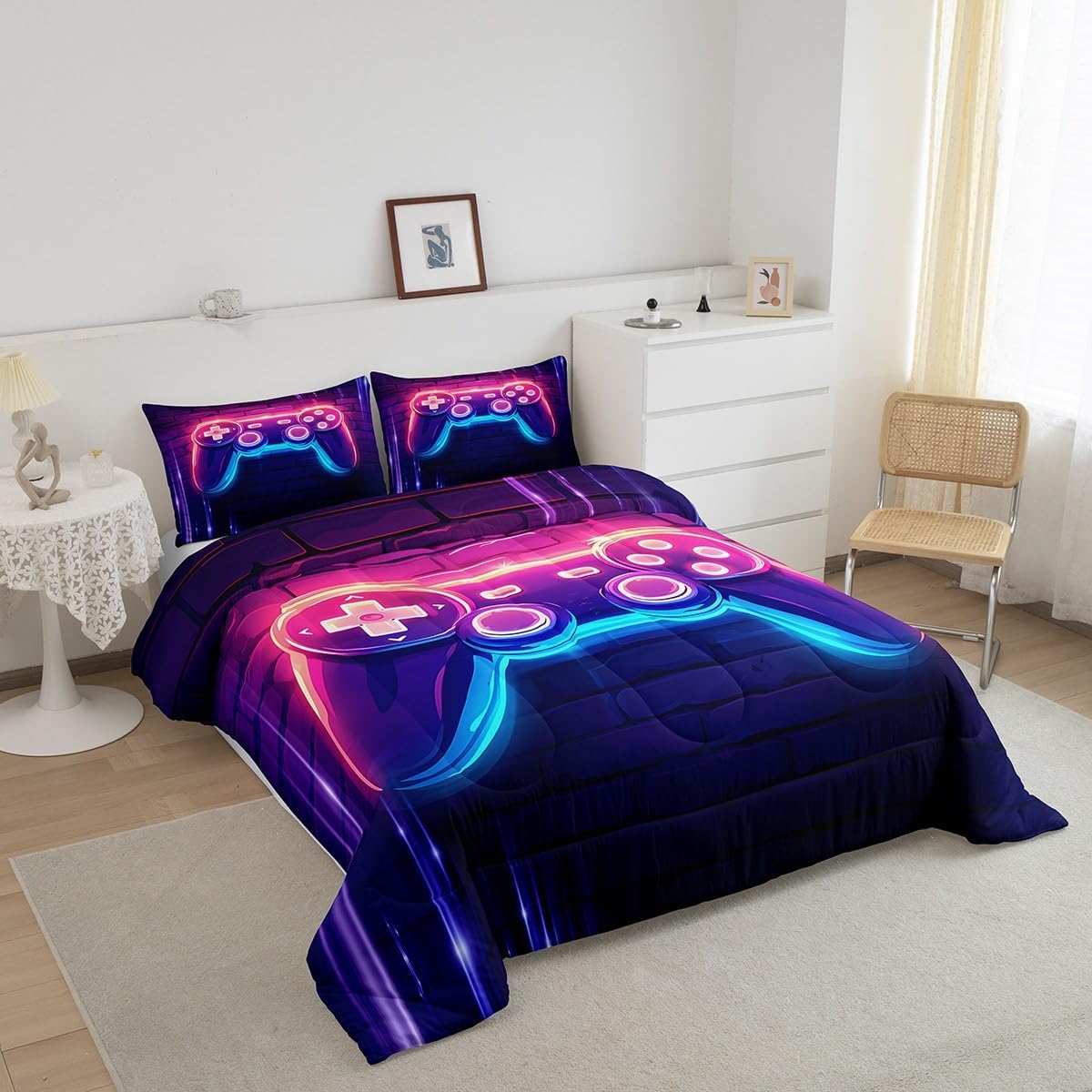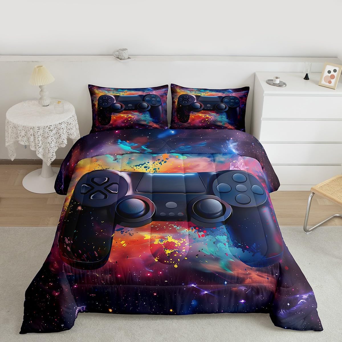 Makeover your bedrooms every season with our comforter sets; good item for your room, girls boys youth room, master bedroom Also a great decoration idea for your mom, dad, sister, brother, grandma, wife, husband, daughter, son and all other beloved Size Information:1 Toddler size comforter 42" X 58" and 1 pillowcase 30" X 20"1 Twin size comforter 68" X 90" and 1 pillowcase 30" X 20"1 Full size comforter 79" X 91" and 2 pillowcases 30" X 20"1 Queen size comforter 90" X 90" and 2 pillowcases 30" X 20"1 King size comforter 104" X 90" and 2 pillowcases 36" X 20"Useful and practical: A practical product for homes, dorm rooms, hotels, guest rooms. Comfortable to use for being polyester which is soft and breathable Unique design:Vivid colors and clear printed with digital printing. These unique designs match well with various color of your rugs, curtains, headboard, furniture, and all other decor accessories Characteristic:As manufacturers of digital printed home textiles, we follow current trends and bring you new home fashion Either a comforter to your family or friend, relative or boyfriend girlfriend, or to yourself, the item should be interesting and authentic Note:The comforter and pillow cases are printed on the front side only, the back of them are white colored