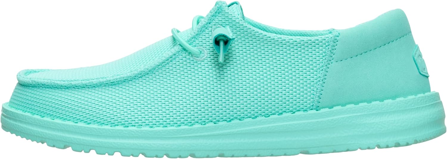 For the style savvy, there's the Hey Dude Wendy Funk Mono. Textile lining and upper. Removable foam insole. Elasticized lacing system. Flexible outsole. Moc toe silhouette.