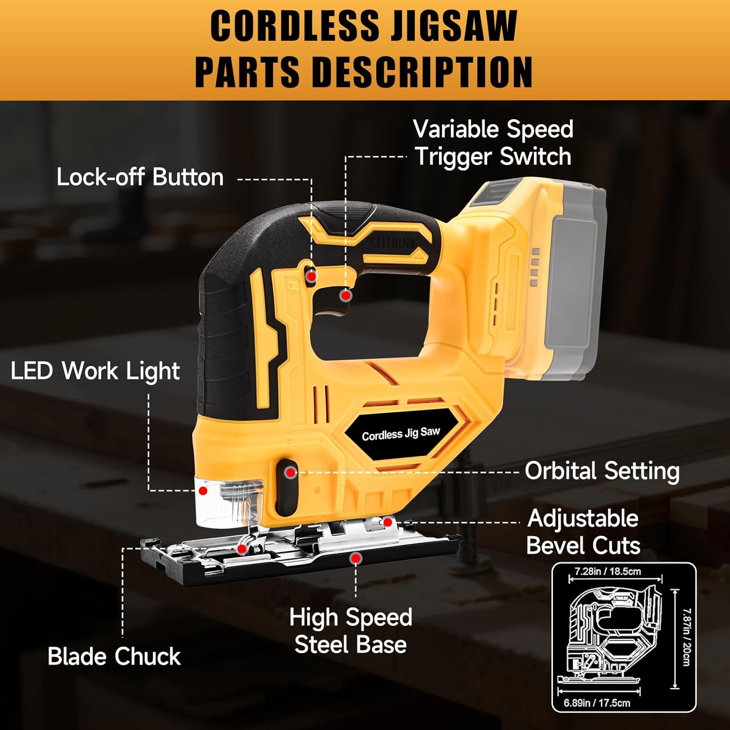 | Included Components | Jig Saw, T-Shank Blade for Wood 3.9 Inch*2, T-Shank Blade for Wood 5.9 Inch*2, T-Shank Blade for Metal*2, Screwdriver, Instruction Manual |