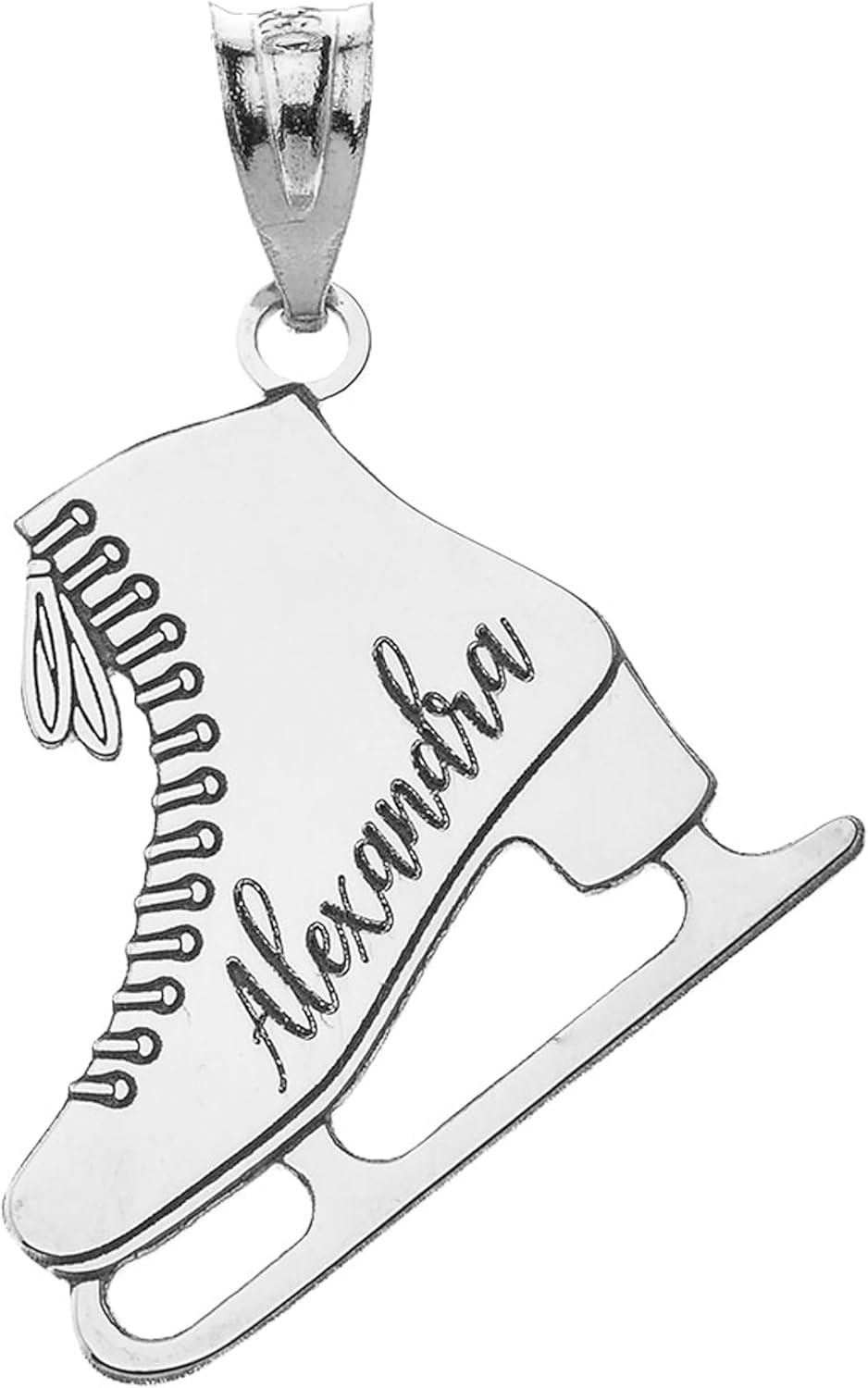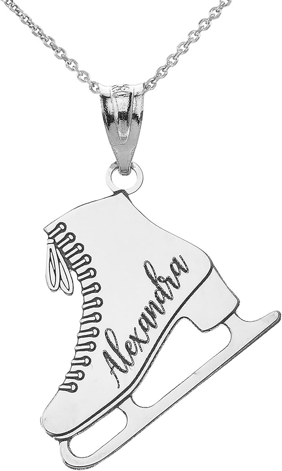 Express your passion for winter skating with this sparkling personalized name ice skate charm. Fashioned from the finest 925 sterling silver. Tarnish-free and allergy-free, this custom made sweet charm is the finest treat for yourself or your favorite figure skater. Axel jump and spiral across thin ice, feeling the cool breeze past your face.