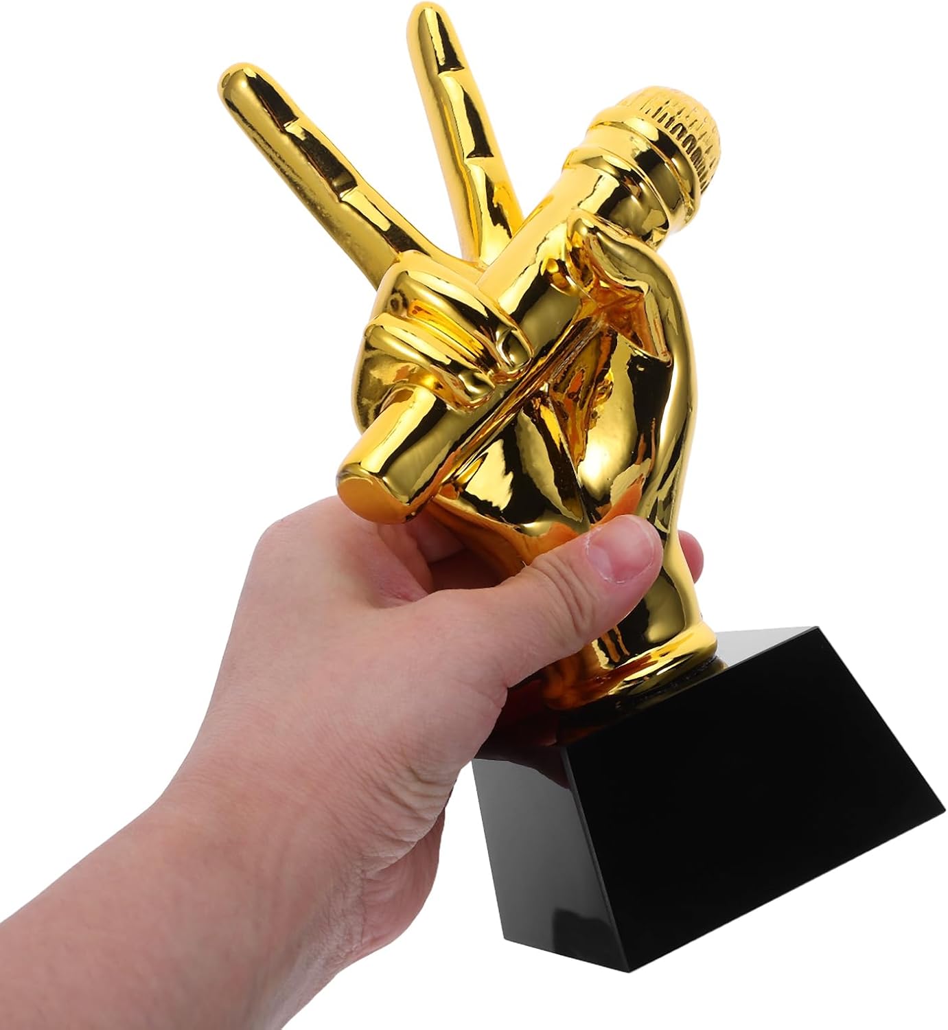 Description This creative resin microphone trophy meets the needs of those looking to celebrate talent and dedication in music or public speaking. Versatile use make it ideal for schools, community events, or private parties, offers meaningful way to recognize achievements and inspire future performances. Features -Color:Golden -Material:Resin -Size:19.50X11.50X7.50cm/7.66X4.52X2.95in themed: the microphone shaped trophy is tailored for music competitions, karaoke nights, vocal performance awards -Event showstopper: add glamour and excitement to your event with this eye-catching trophy as prize or decoration -Multi-occasion use: from school contests to corporate ceremonies, this trophy fits seamlessly into diverse settings and themes -Interactive element: encourage guests with the trophy for fun and memorable photos, enhancing the event's engagement -Unique: unique and thoughtful for music enthusiasts, event organizers, or anyone who appreciates creative craftsmanship