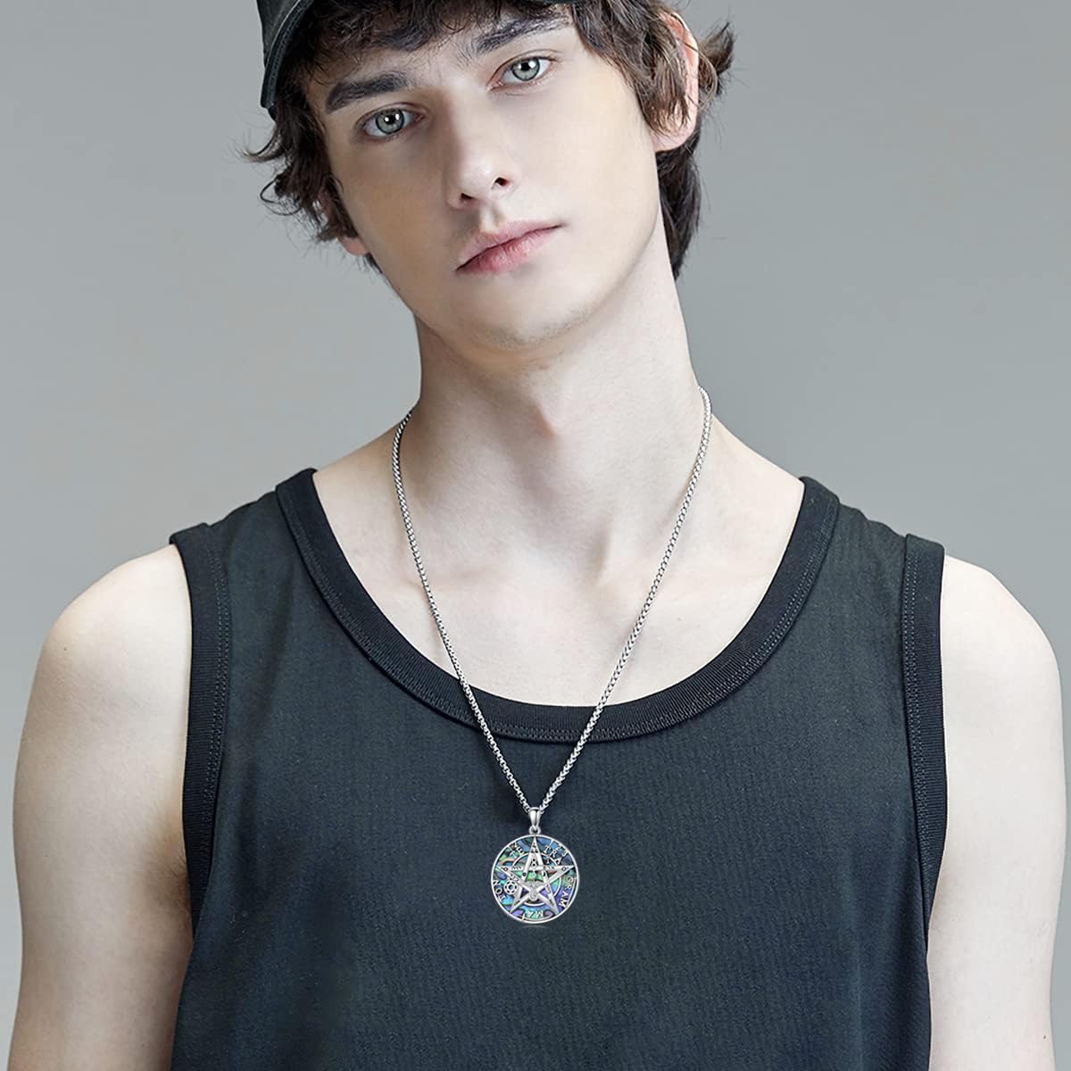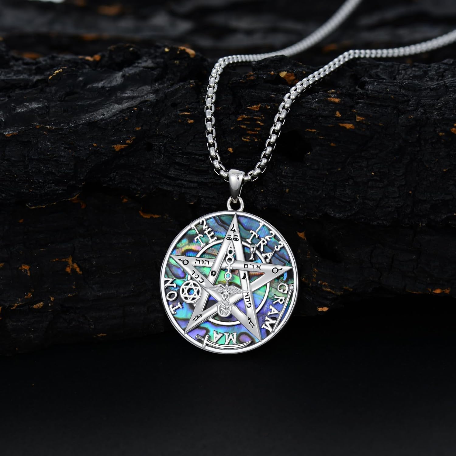 Seiyang 925 Sterling Silver Tetragrammaton Pendant Pentagram Necklace for Men Amulet Energy Pendant Tetragrammaton Jewelry Gifts for Men Boys with 2mm 22+2 In Rolo Chain