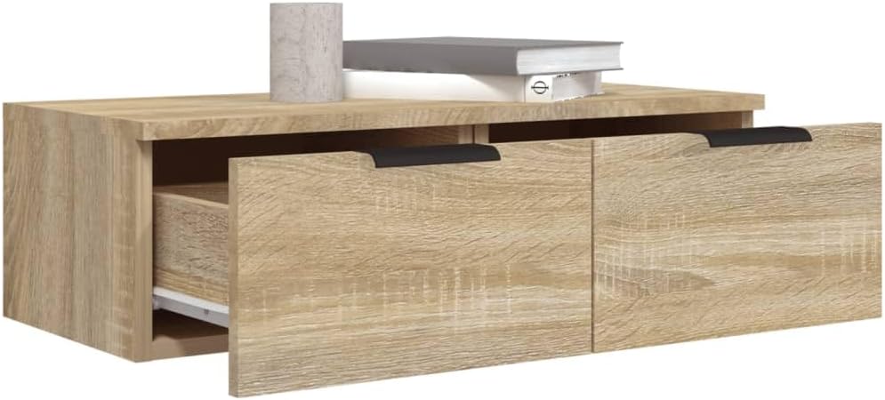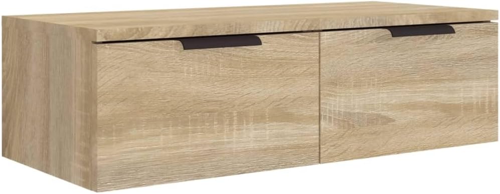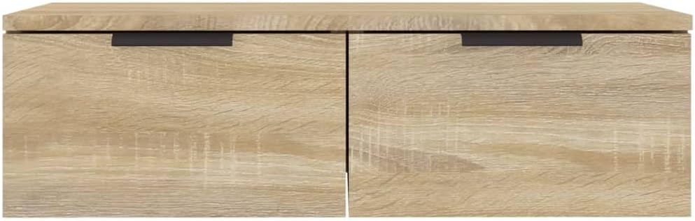 This wall cabinet in a classy Sonoma Oak finish gives you a practical storage solution while adding to the look of any indoor space. It's made with style and convenience in mind, and its streamlined construction and warm color make it just right for living rooms or offices.Well-designed with two sturdy drawers, this cabinet holds various items, making it ideal for organizing any room.The attractive Sonoma Oak finish not only adds style but also goes well with lots of decor, ensuring versatility.The smooth surface from engineered wood makes it a breeze to clean and maintain, perfect for busy lifestyles.This wall-mounted unit saves precious floor space while still providing loads of storage, ideal for smaller rooms.Finished with sleek white knobs, it keeps a modern yet timeless look that fits right into today’s homes. Color: BrownShape: RectangularMaterial: Engineered WoodIndoor/Outdoor: Indoor OnlyCover Included: NoRoom: Living RoomMaximum Weit: 132.3 lbsMounting Included: Wall/ceiling fixtures - specific screws or wall plugs not includedDimensions: 11.8 x 26.8 x 7.9 in (W x L x H)Surface Height: 0.8 inWeight: 24.69 lbsSwings: NoDelivery Contains: Wall cabinetAssembly Required: YesRecommended Number of People for Assembly: 2