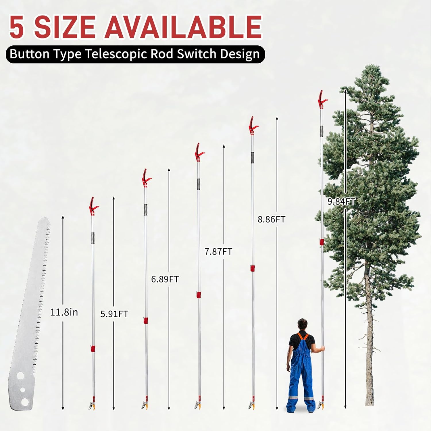 Product Description Pole pruner made from premium materials for enhanced strength and longevity, this fruit tree branch puller and long reach pruner is built to withstand tough cutting tasks. The sharp, rust-resistant blade ensures clean cuts every time, making it a reliable choice for extendable pruner and pole pruner applications. Specification Product Information Product Type: General Item Overall Dimensions: 5.91'-9.84' Product Length (in): 118.11 Product Width (in): 6.30 Product Height (in): 1.18 Weight (lbs):3.42 We stand behind the quality of our product. If you have any questions or concerns, please don't hesitate to reach out to us. Your satisfaction is our top priority, and we're here to ensure you have a positive experience with our products.