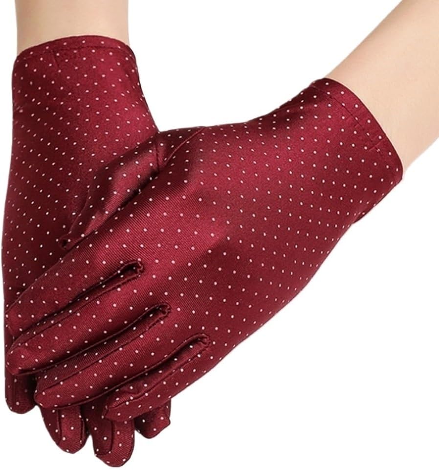 Type. Glove.Material. Knitted fabric.Gender. Women's.Features. Polka dot print, sun protection, elastic band.Color: , black, white, beige, burgundy, coffee, gray, .Size: 21cm x 8cm/8.27" x 3.15" (approx.)Protective ability to effectively pamper and protect your hands from the sun in the hot .Made of good material, comfortable to wear.Features dot printing, also for daily wear.Package includes: 1 pair of glovesSize is measured manually, there is inevitably an error of 1-3 cm, please prevail in kind.There will be different degrees of color difference due to different shooting lights. Subject to the real thing.Widely Used:Our protection glove not only can be used for gel manicures. It can also be used for outdoor scenarios like fishing, camping, hiking and driving as well. We recommend you to wash the glove before first use to avoid lint to stick to your gel polishes. Customer satisfaction is our first priority.