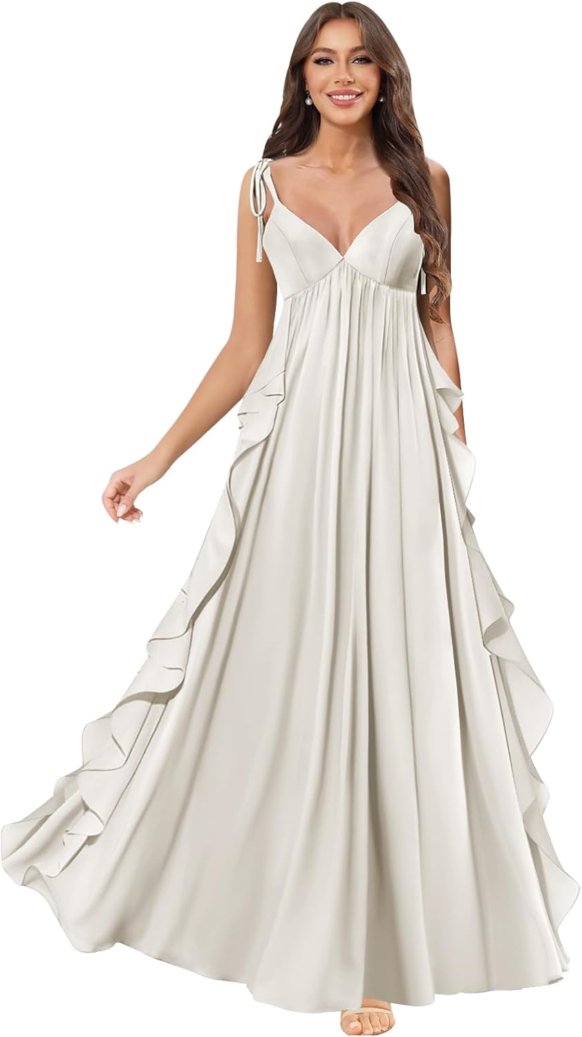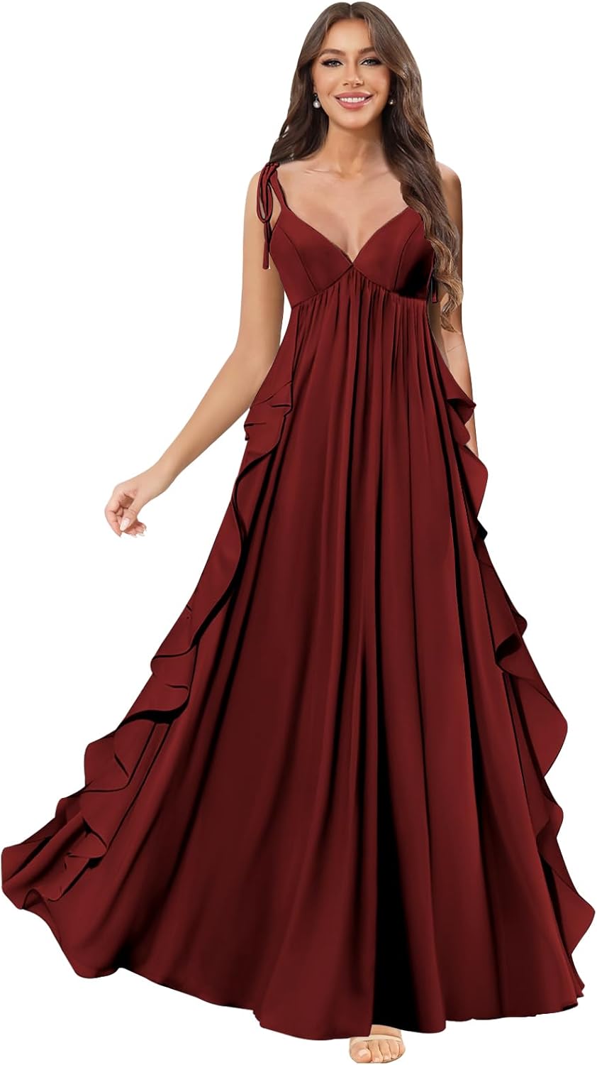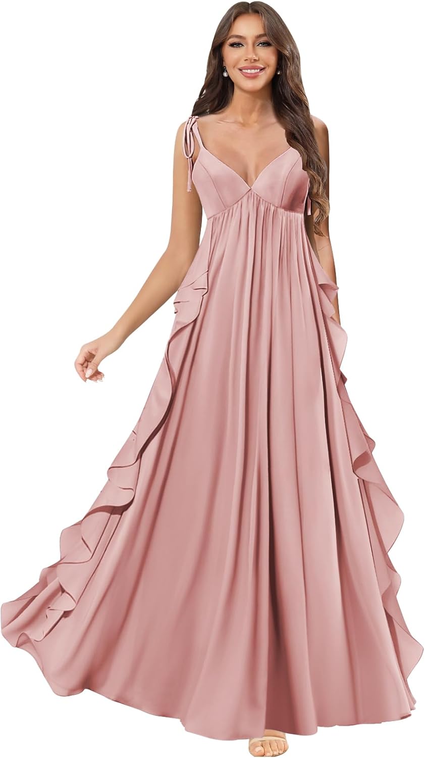 | Occasion Type | pleated wedding guest dress, ruffles chiffon formal dress, spaghetti straps prom dresses for women, v neck bridesmaid dresses for wedding, wrap ruched evening gowns |